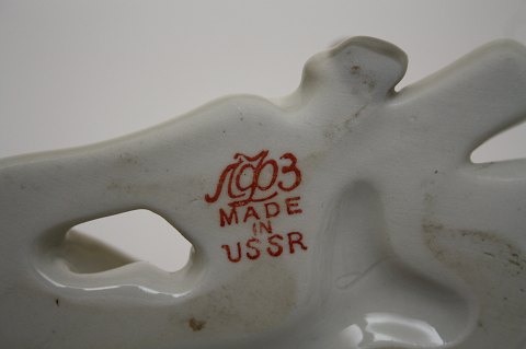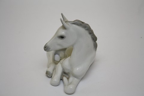 Russisk figur, liggende hvidt føl. Længde 14 cm. Højde 10,5 cm. Pris: 375 kr.
