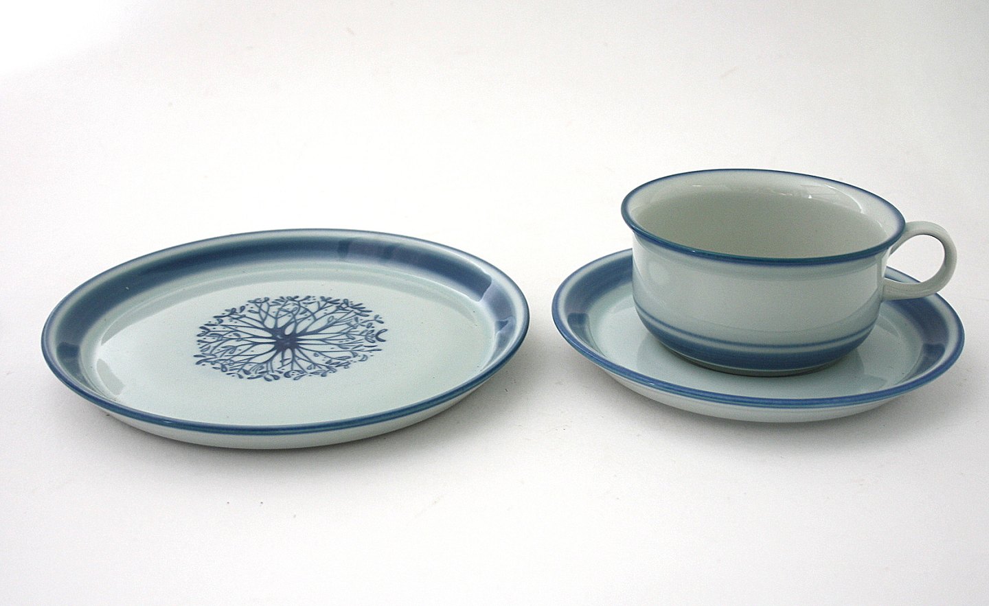 Desiree, Mistelten. Kaffekop med underkop. Højde 6 cm. Diameter 7,5 cm. Pris: 75 kr. stk. Lager: 12+ Kagetallerken. Diameter 15 cm. Pris: 35 kr. stk. Lager: 6