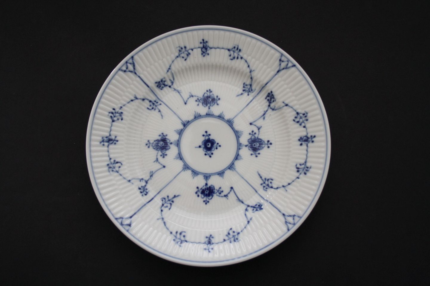 Royal Copenhagen, Musselmalet frokosttallerken. Nr. 1/178. Diameter 21 cm. I. sortering, men med brun brændingsplet se ekstrafoto med hvid baggrund. Foto med sort baggrund er modelfoto. Pris: 375 kr. stk. Lager: 1
