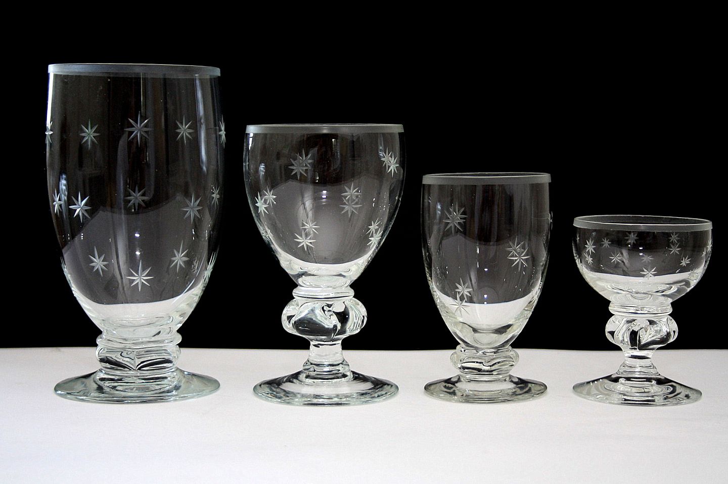 Gisselfeld med slebne stjerner og sleben kant, Holmegaard glasværk,designet af Jacob E Bang 1937.