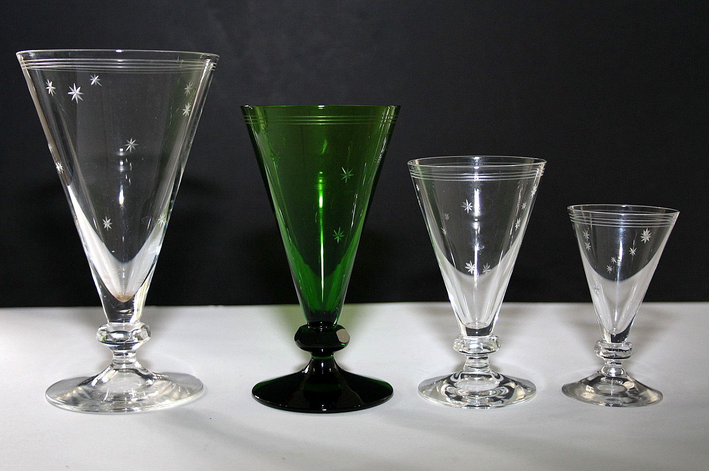 Holmegaard glasværk, Stjerneborg, krystalglas med slebne stjerner og bånd. Facetsleben knop. Designet af Jacob Bang. Produceret i perioden 1937 til 1962.
