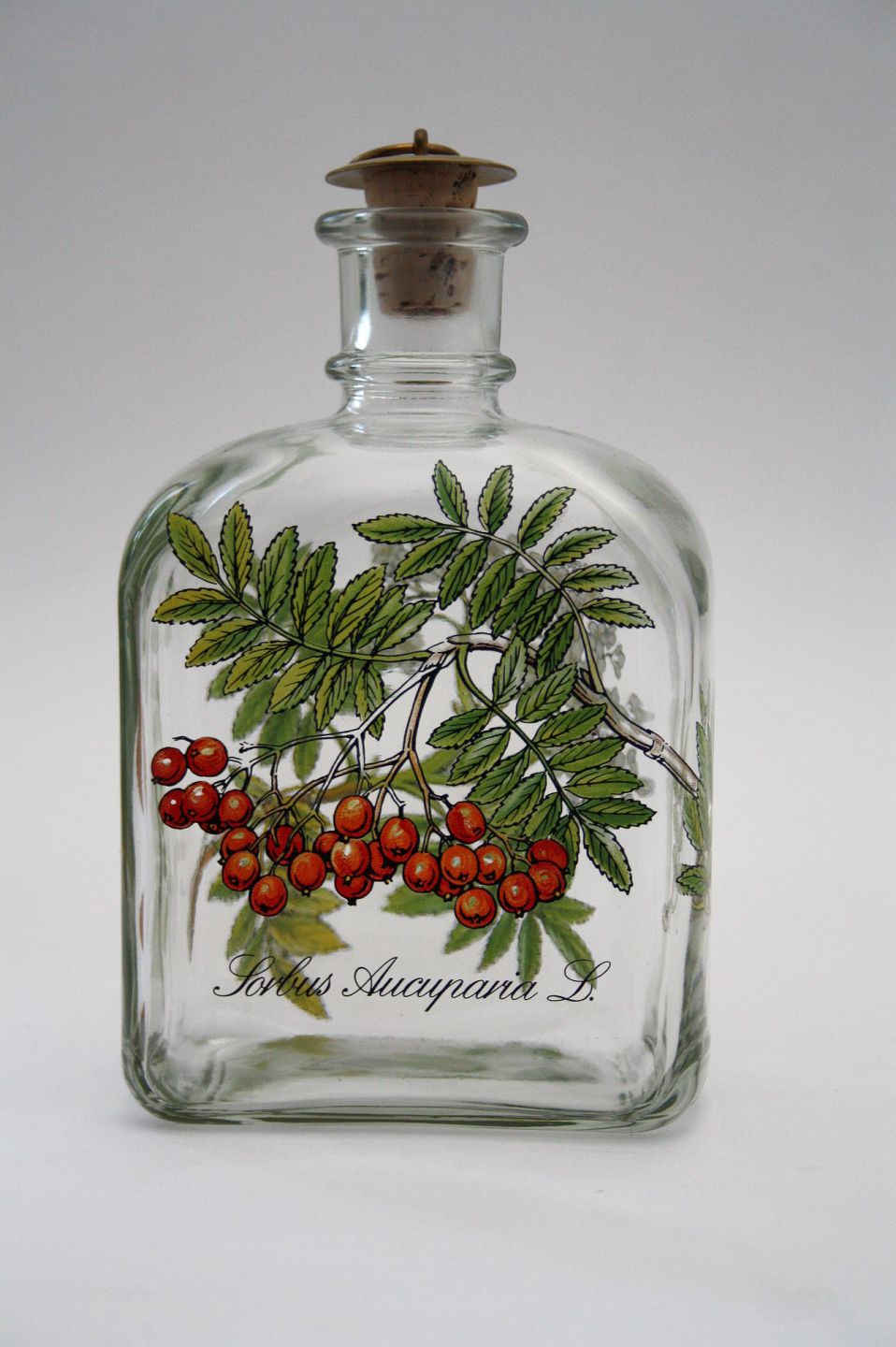 Holmegaard, Brændevins Amatøren, med Rønnebær motiv. Designer Michael Bang. Højde 16 cm. Pris: 250 kr. stk. Lager: 1
