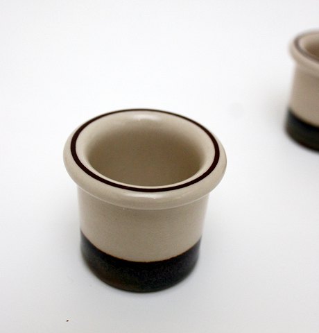 Bing & Grøndahl, Peru stoneware. Lysebrun glasur med mørkebrun kant og bort. Kop med underkop nr. 308. Højde 6 cm. God stand