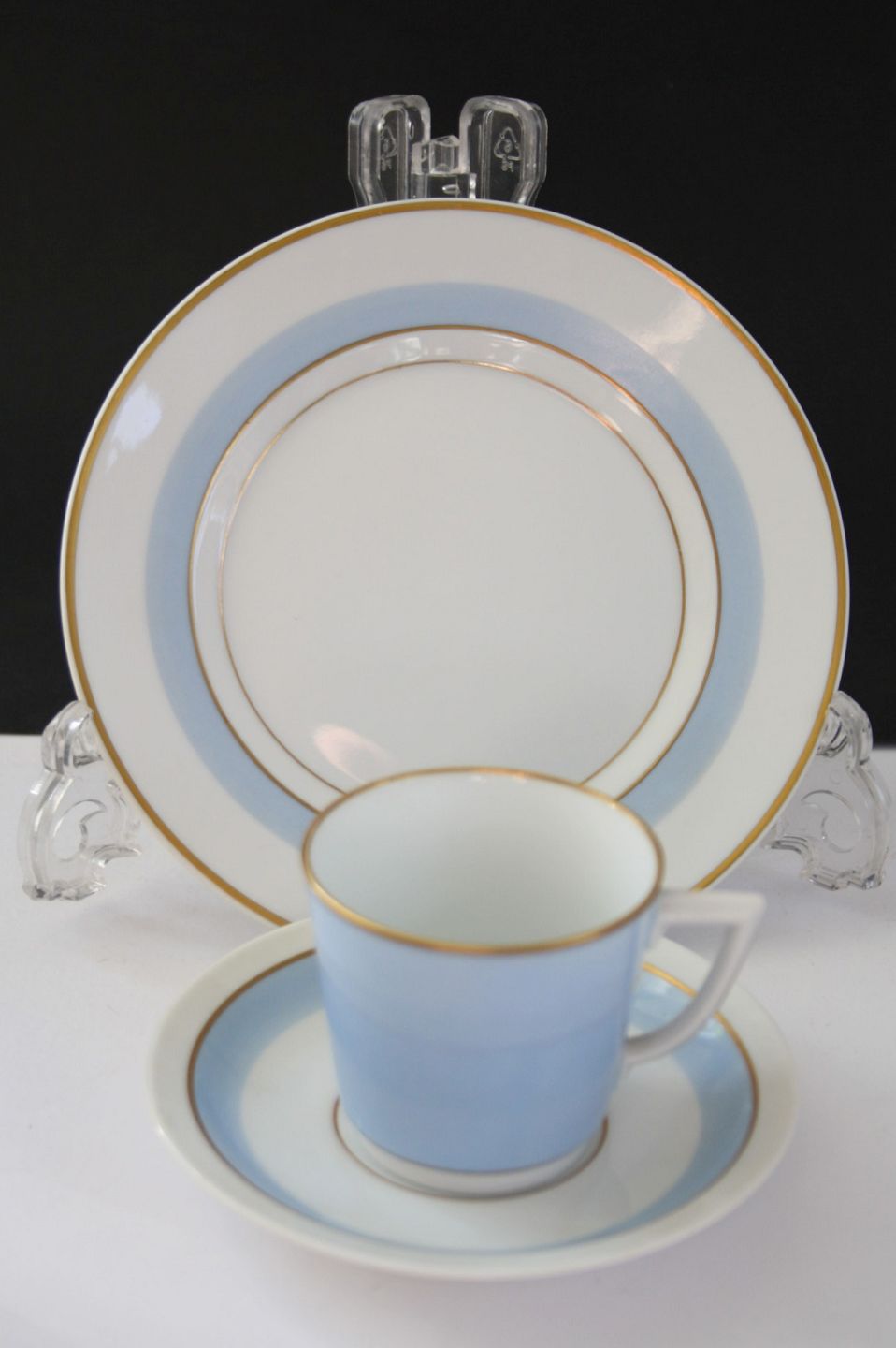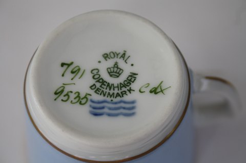 Royal Copenhagen, Hjortekær. Lyseblåt stel med guldkant.