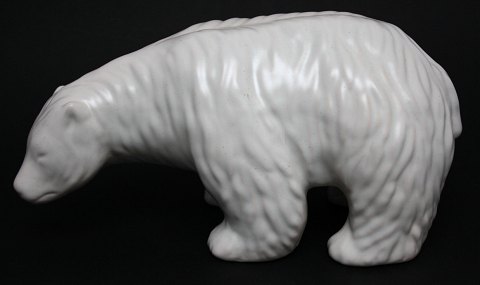 Johgus, Bornholm, Matglaseret isbjørn. Perfekt stand. Længde 31 cm. Højde 14,5 cm. Pris: 1100 kr.