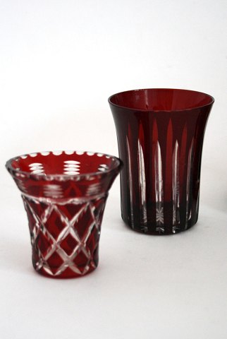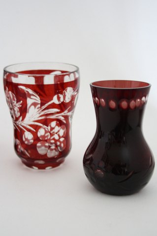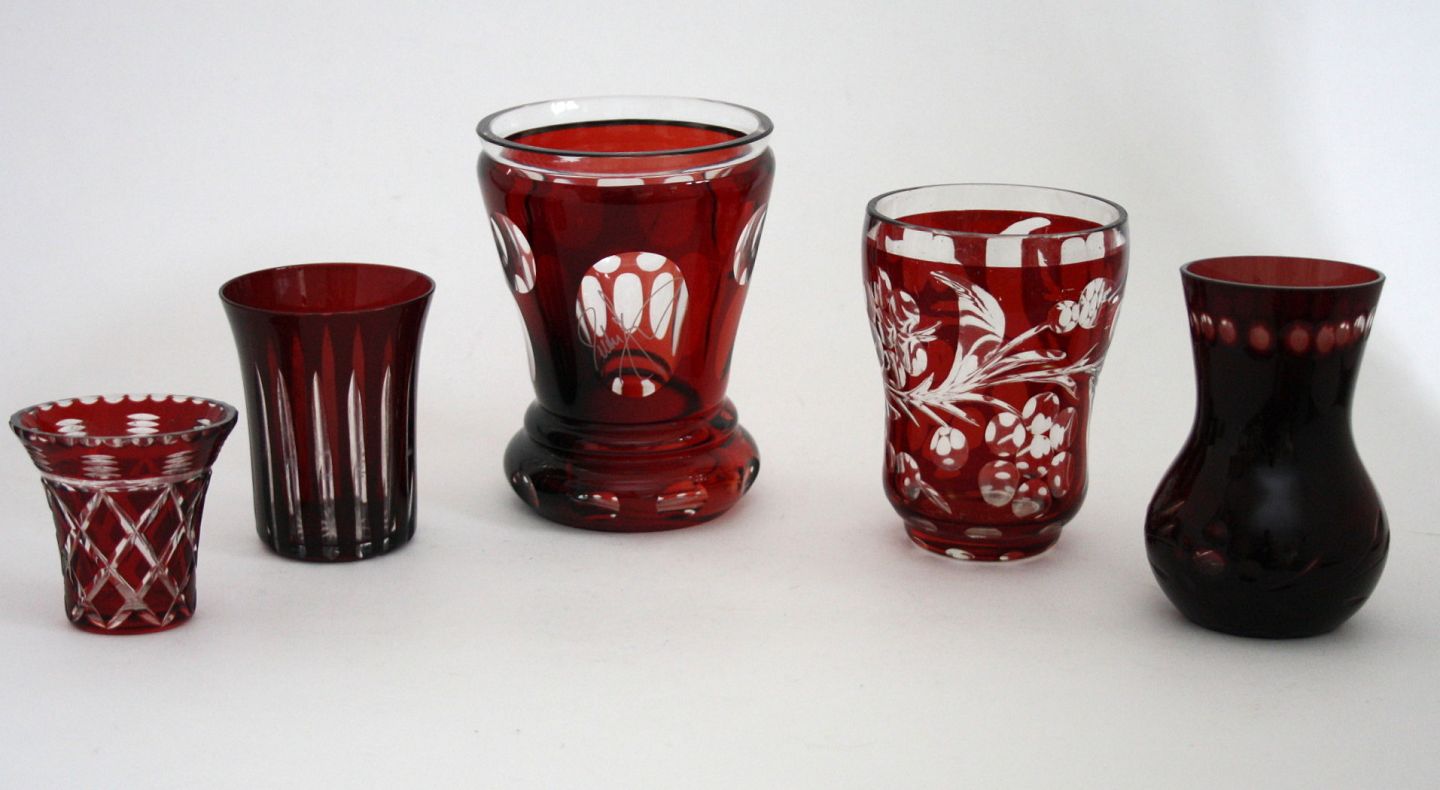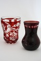 Røde Bøhmiske krystalvaser. Fra venstre mod højre.