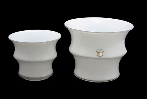Holmegaard, Karen Blixen urtepotteskjulere i opalhvid, designet af Anja Kjær fra 2000. Obs Arkivfoto.