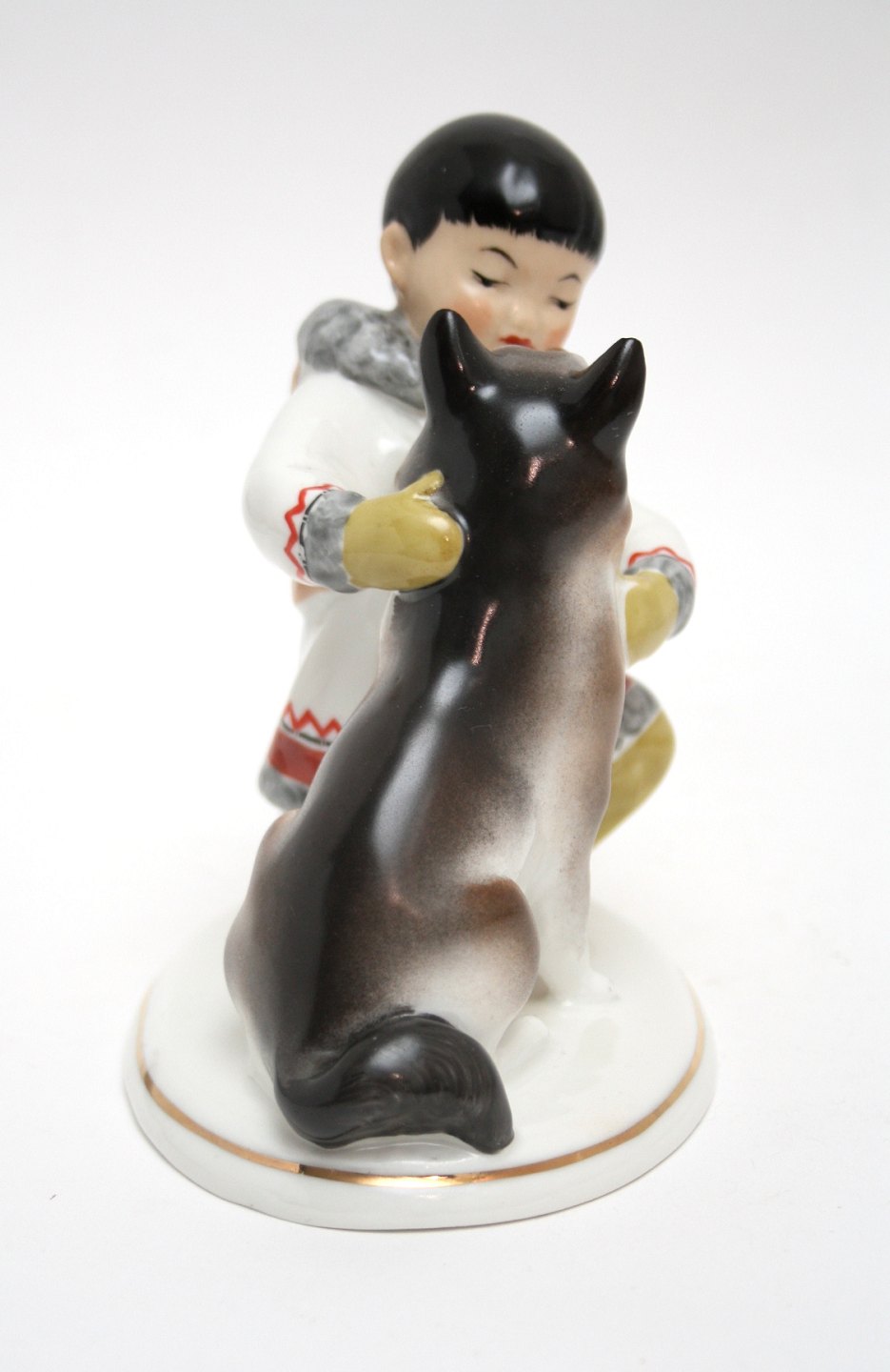 Grønænderdreng med hund made in USSR. Højde 13,5 cm. Længde 13 cm. Pris: 475 kr.