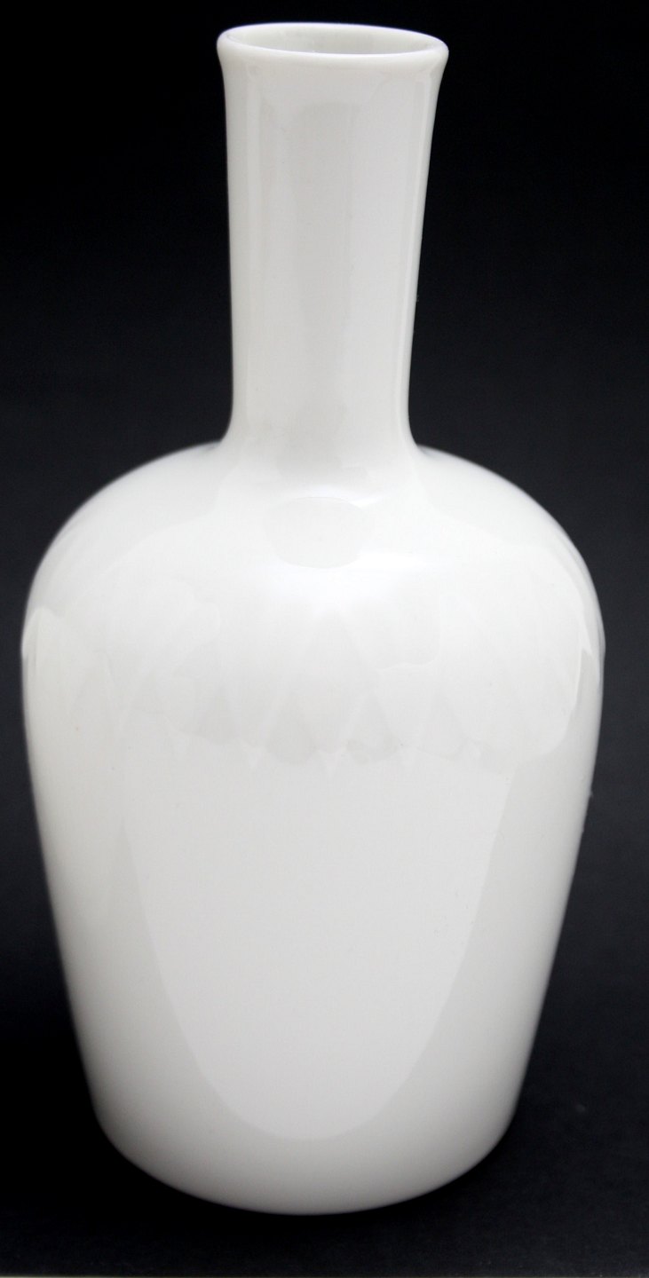 T.v. og t.h. Vase med motiv på kraven. Formnr. 3599. Højde 16,5 cm. I. sortering. Pris: 275 kr. stk. Lager: 1