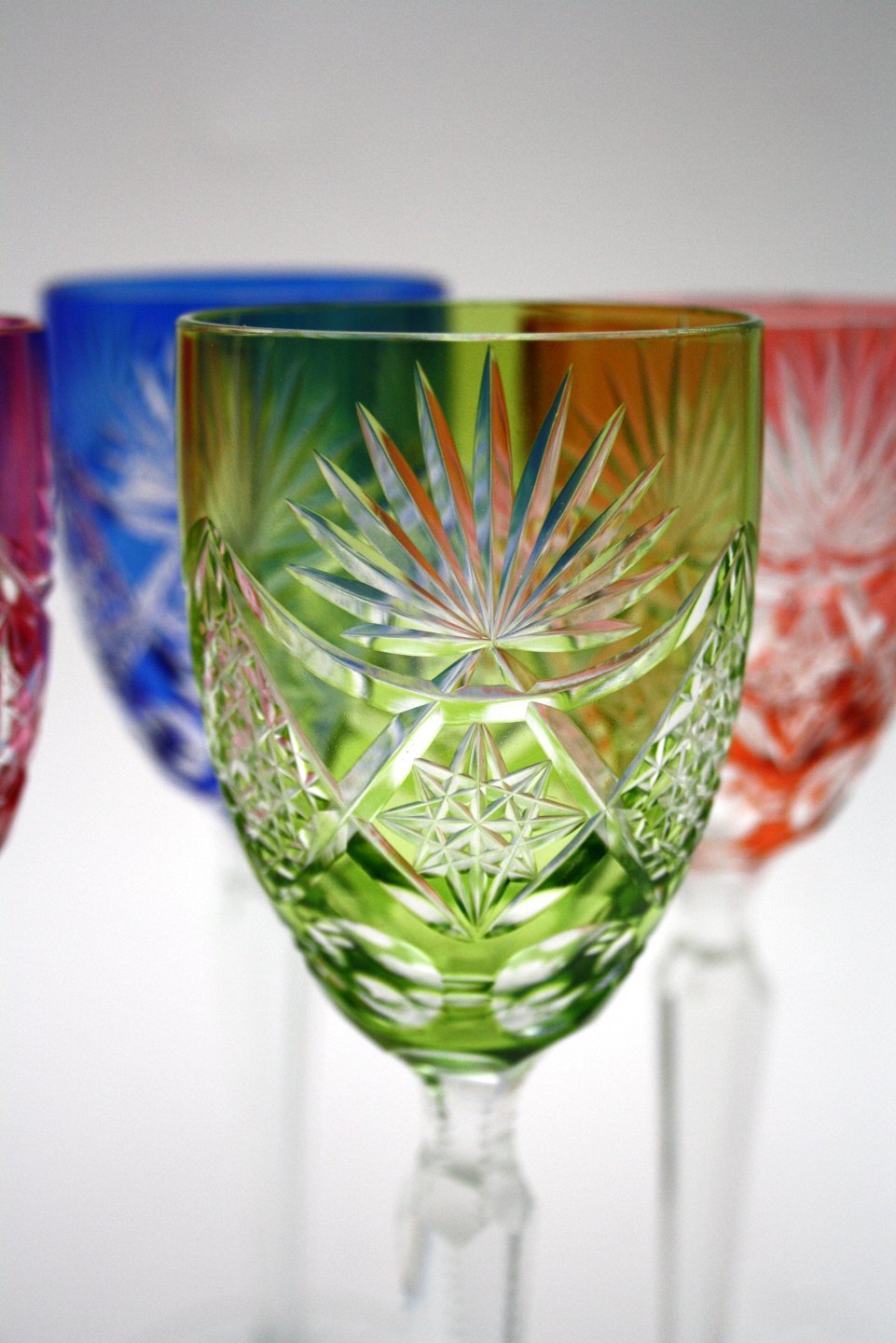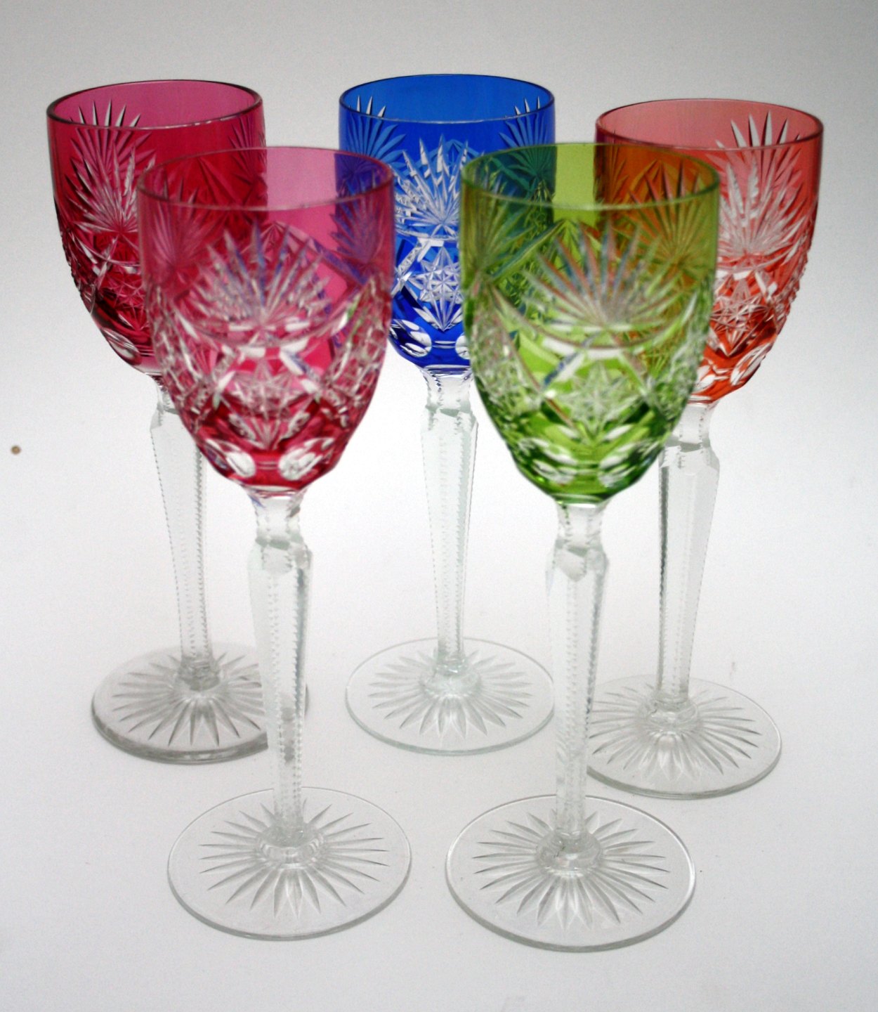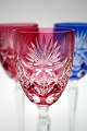 Bøhmisk krystal, slanke vinglas, slebet kumme og stilk. Højde 22 cm. Øverste diameter ca. 6,5 cm. Pris: 275 kr. stk.