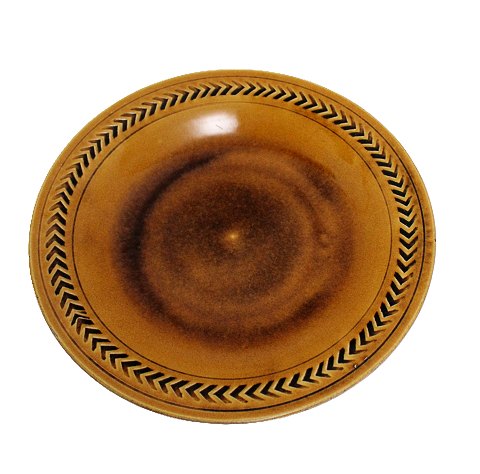 Kähler, smuk rund stribet vase i blålige nuancer og cremet glasur. Signeret HAK Denmark. Højde 11 cm. Største diameter 14 cm. Flot stand. Pris: 1850 kr.