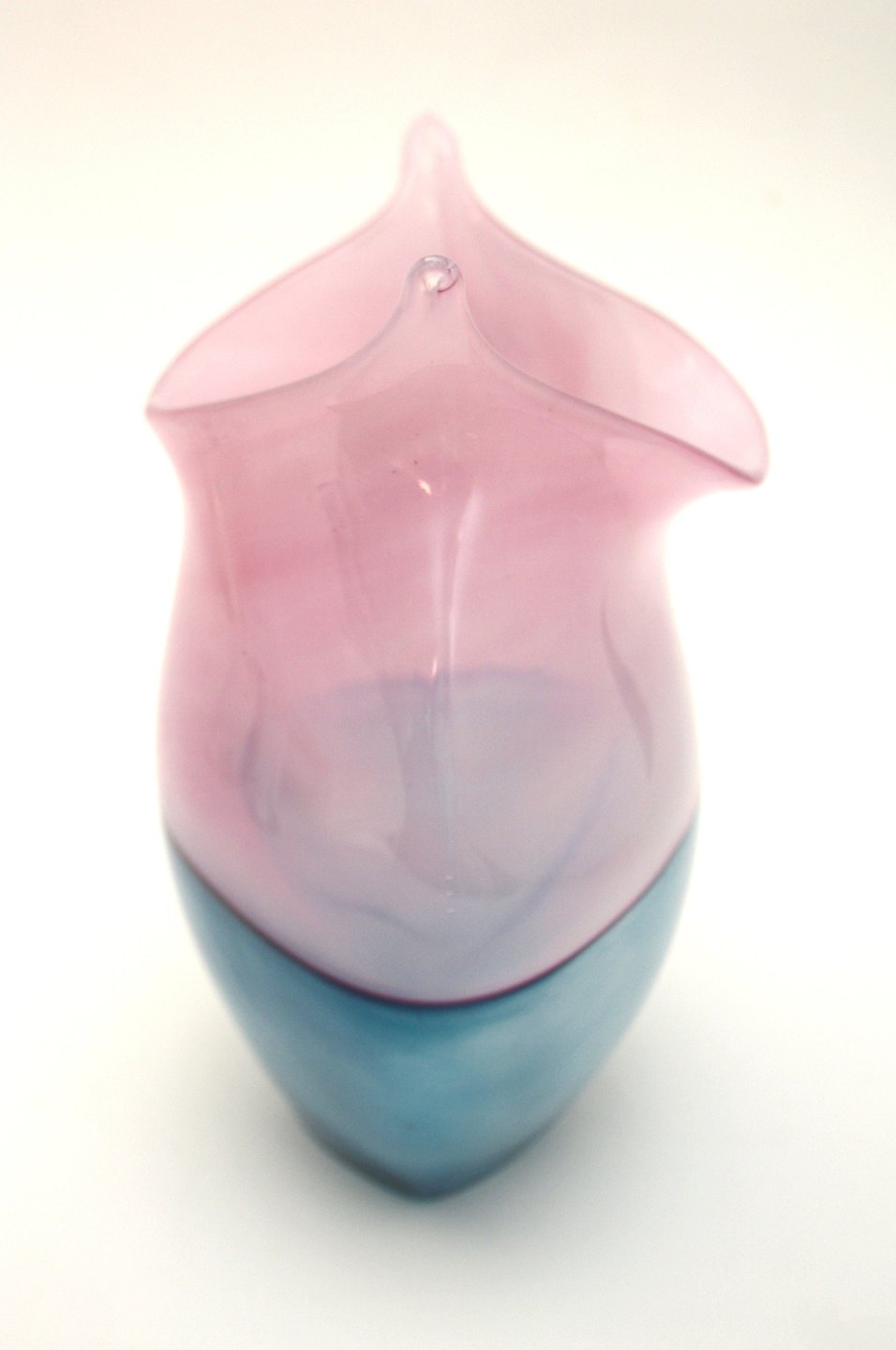 Cumulus vase i blå og pink, højde 17,5 cm. design Per Rene Larsen, holmegaard glasværk 1986. Perfekt stand. Pris 650 kr.