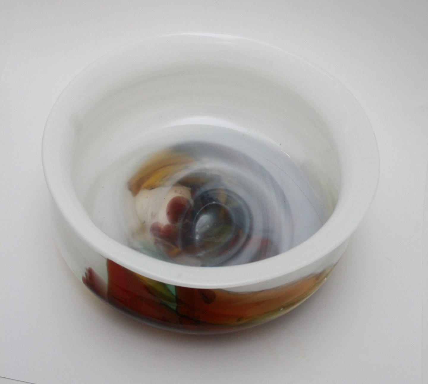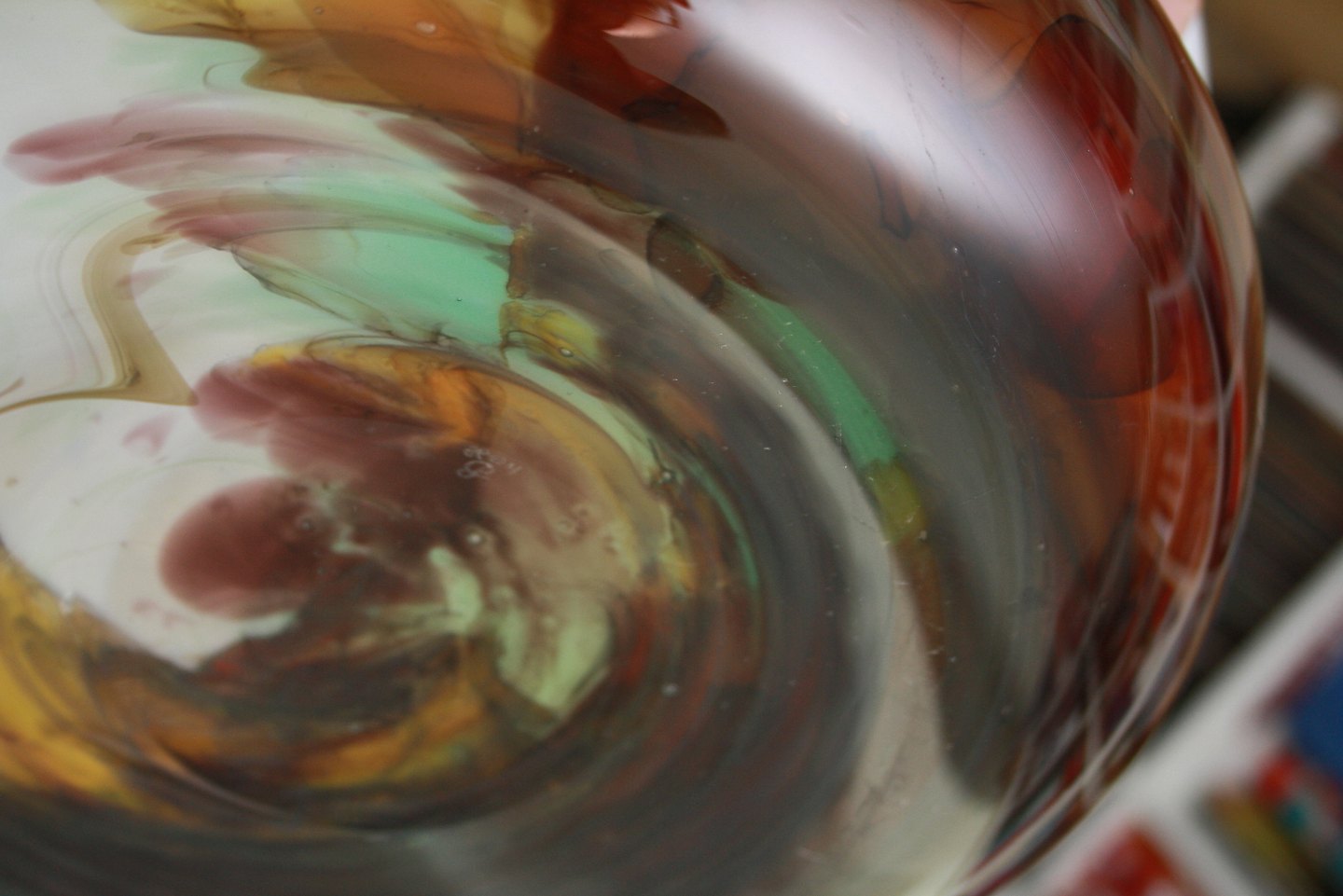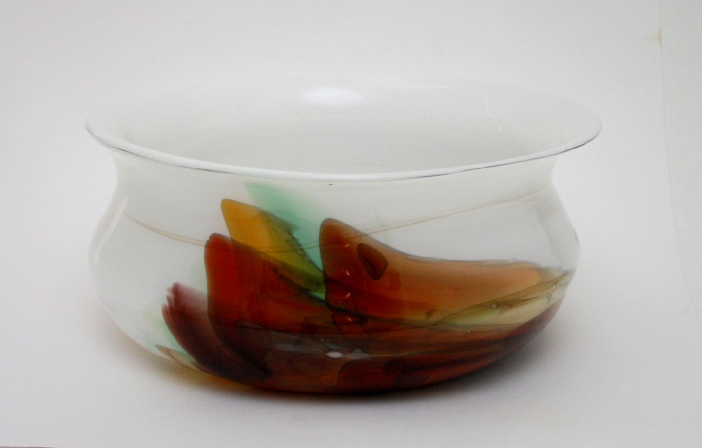 Holmegaard glasværk 1974, Cascade stor skål. Højde 11-11,5 cm. Diameter 26 cm. Designet af Per Lütken. Signeret HG4, PL. Pris: 1800 kr.