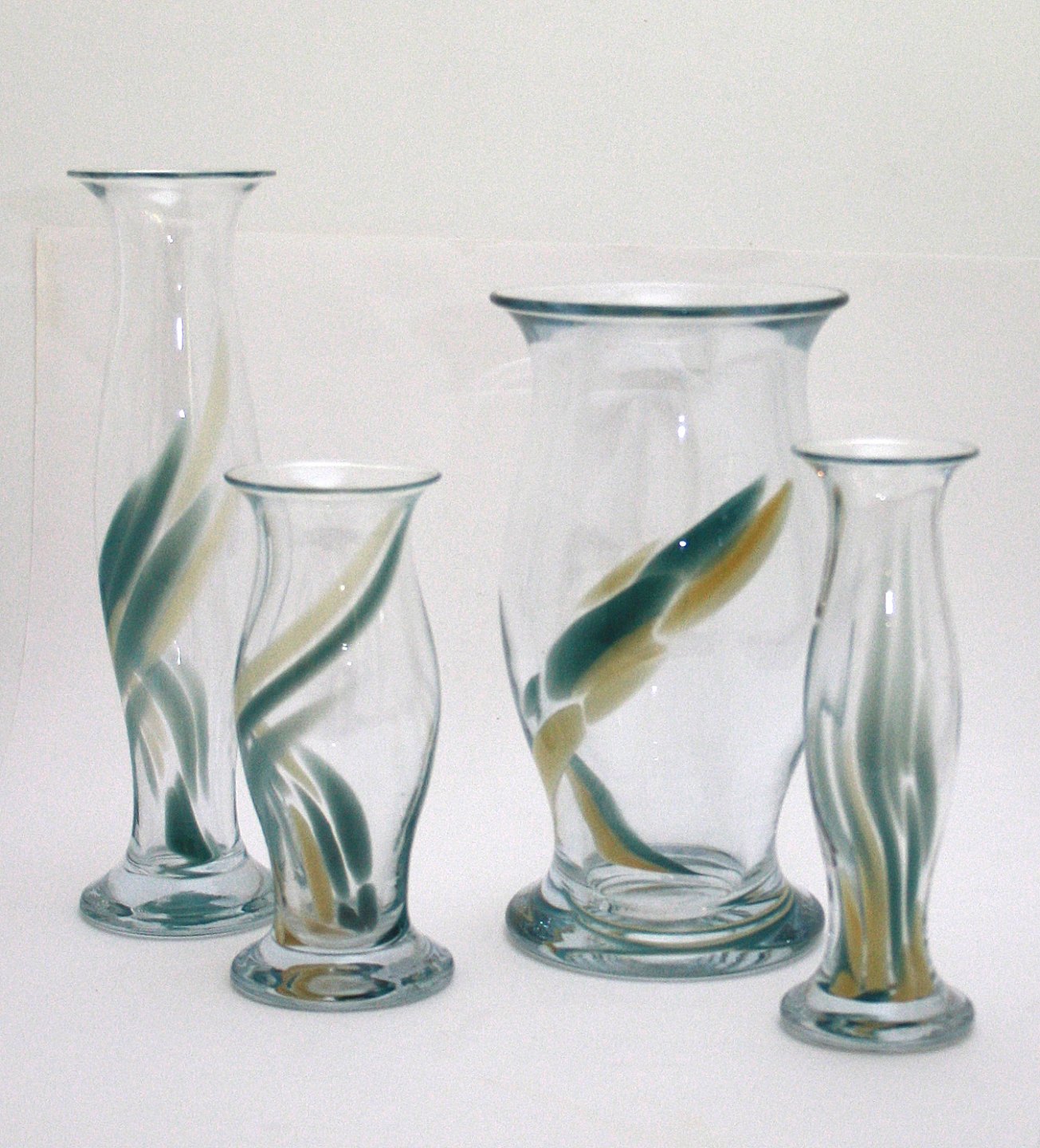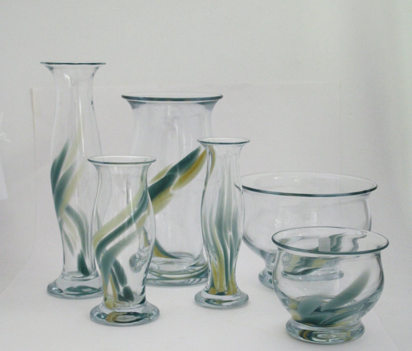 Holmegaard, Harmony med støvgrøn og sart gul farve dekoration, designet af Per Lütken 1984.