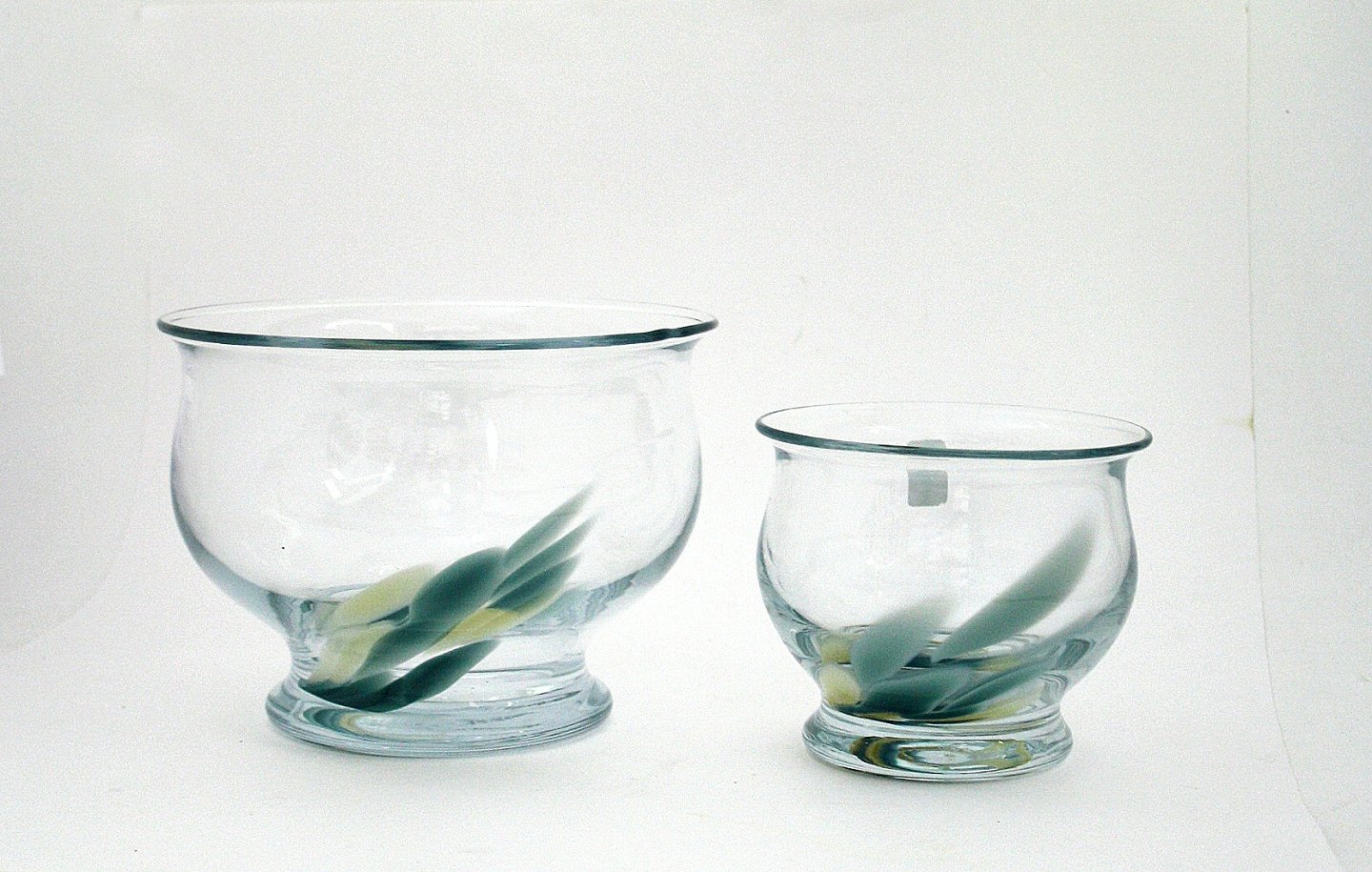 Mellem skål, højde 10 cm. Øverste diameter 11,5 cm. Pris: 350 kr. stk. Lager: 2