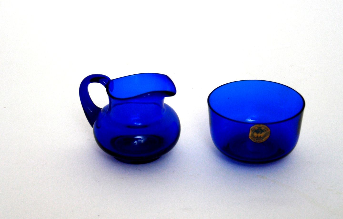 Holmegaard, Sukker og flødesæt i koboltblå glas fra 1960'erne.