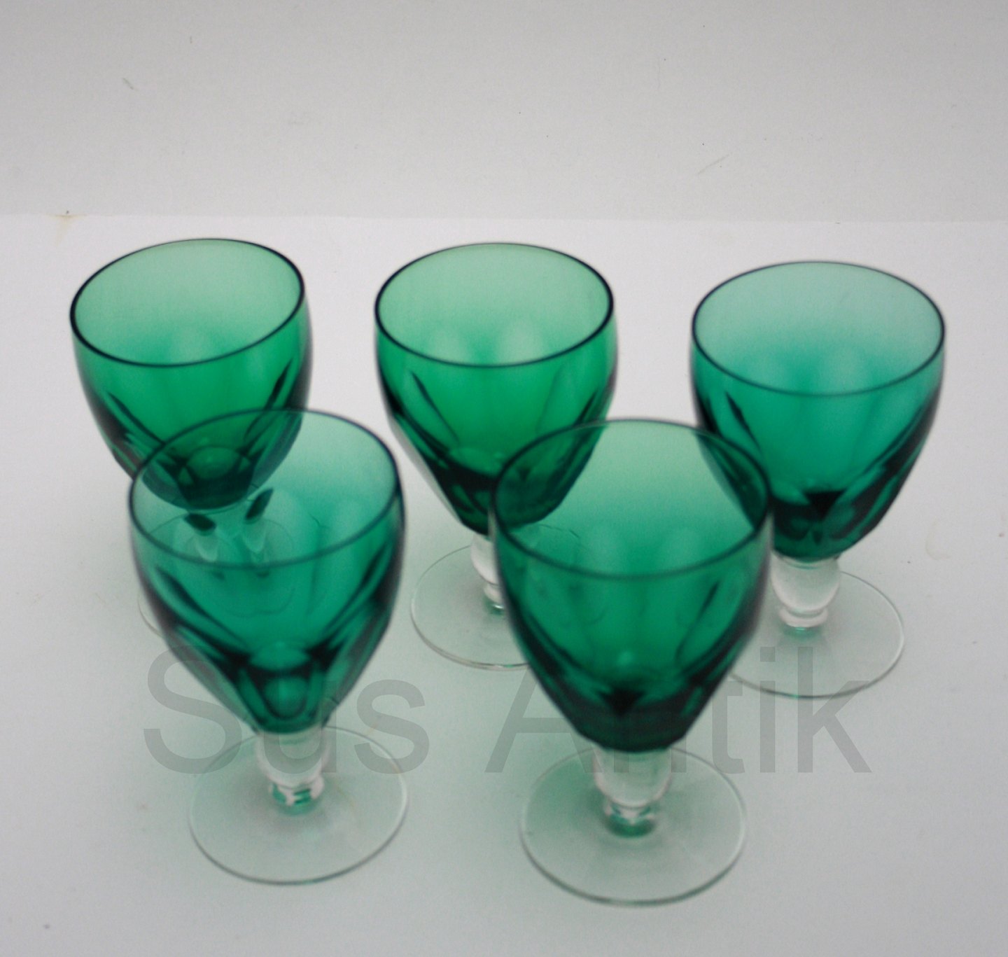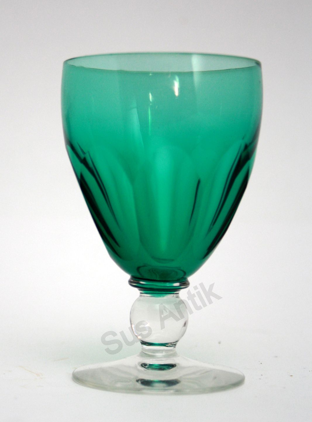 Hvidvin med grøn kumme. Højde 10 cm. Pris: 125 kr. stk. Lager: 5