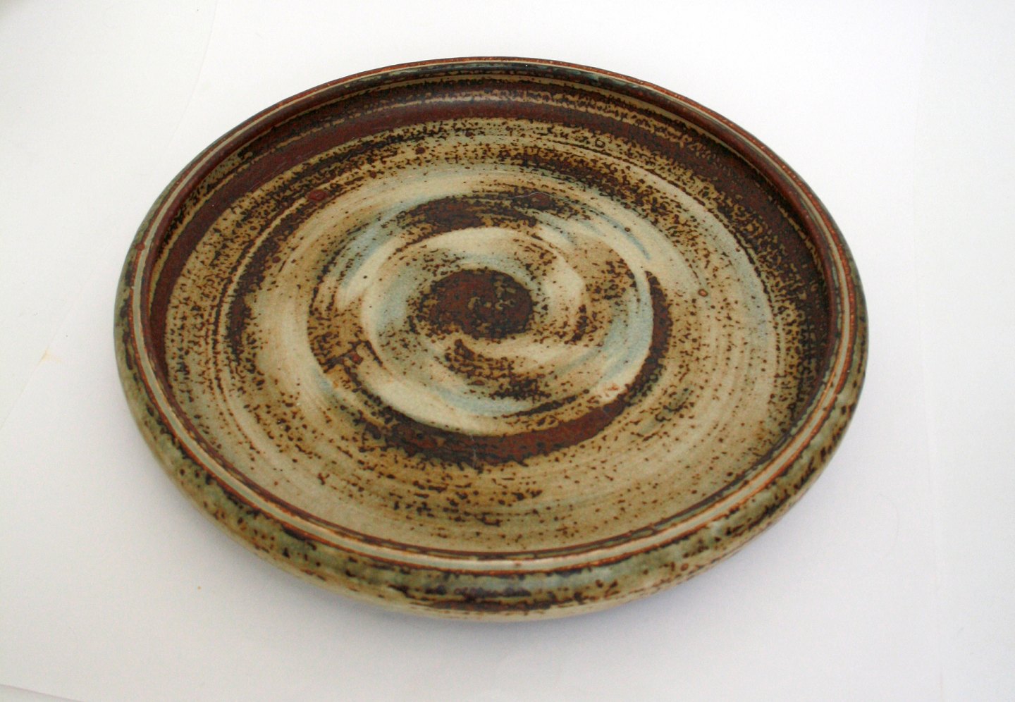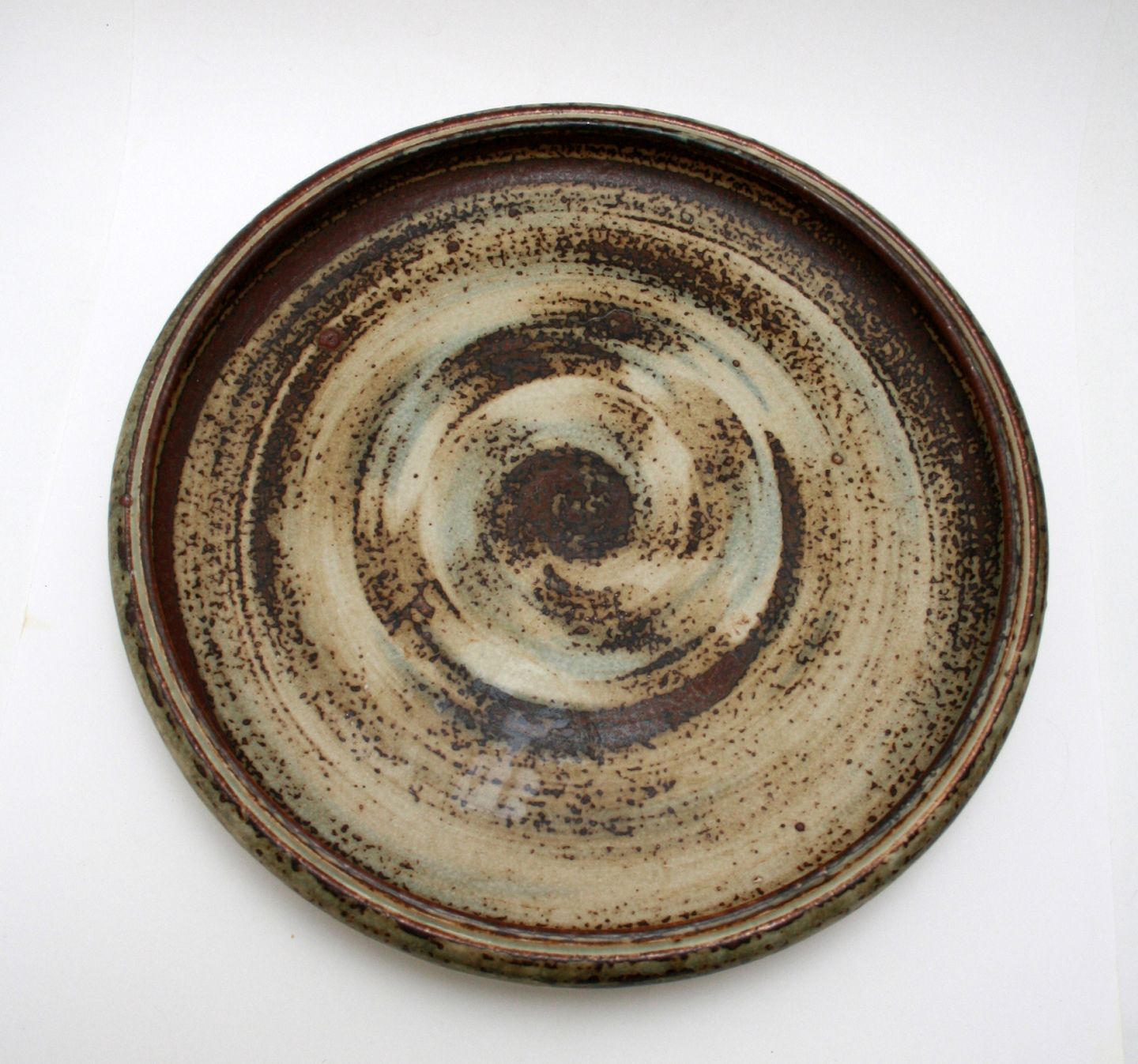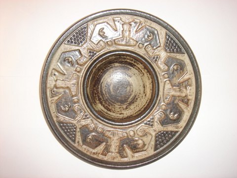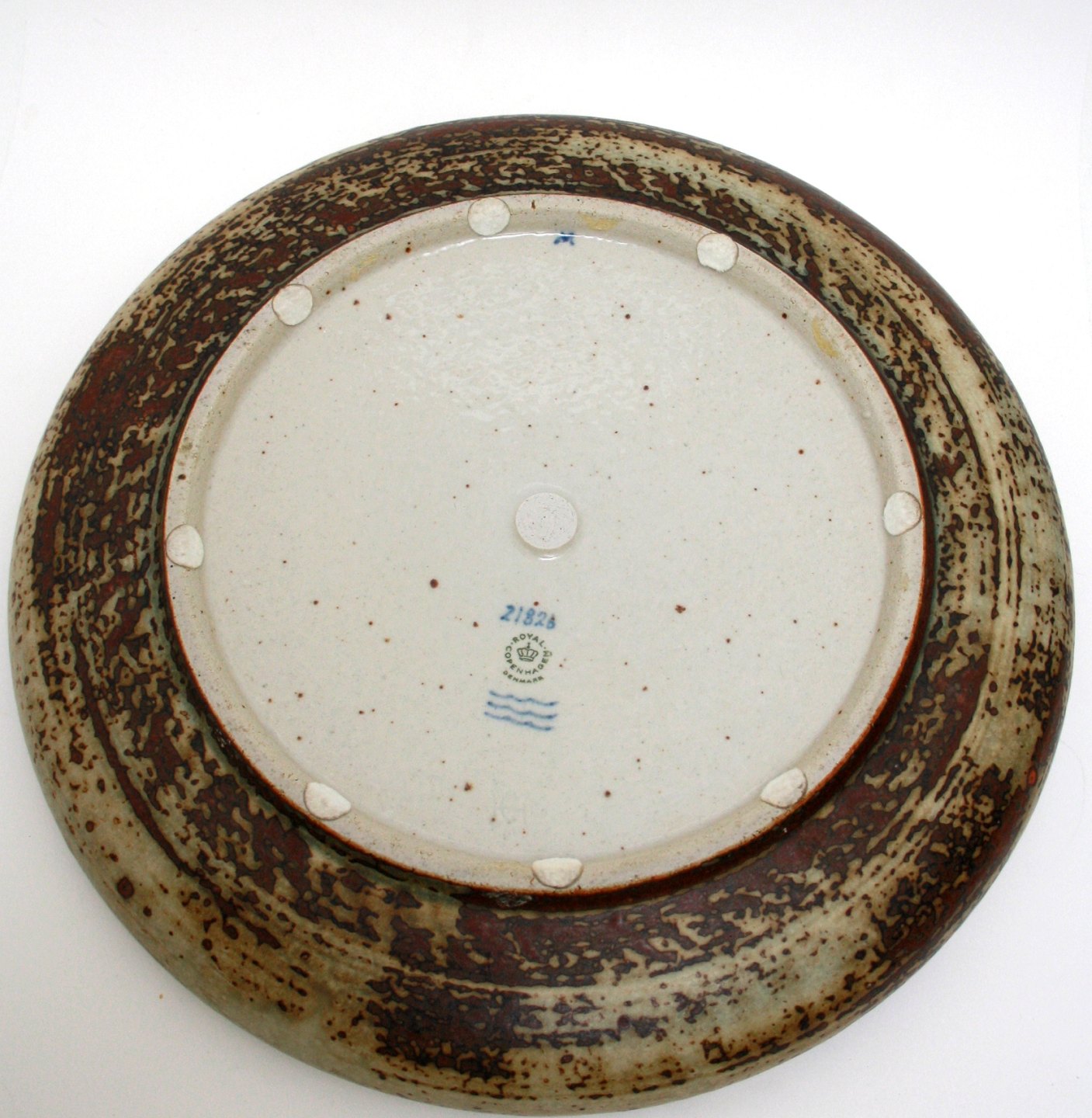 Royal Copenhagen stentøj, Stort rundt fad i sunglasur, designet af Carl Hallier. Nr. 21826. Diameter 36 cm. Højde 5 cm. III. sortering. Pris: 750 kr.