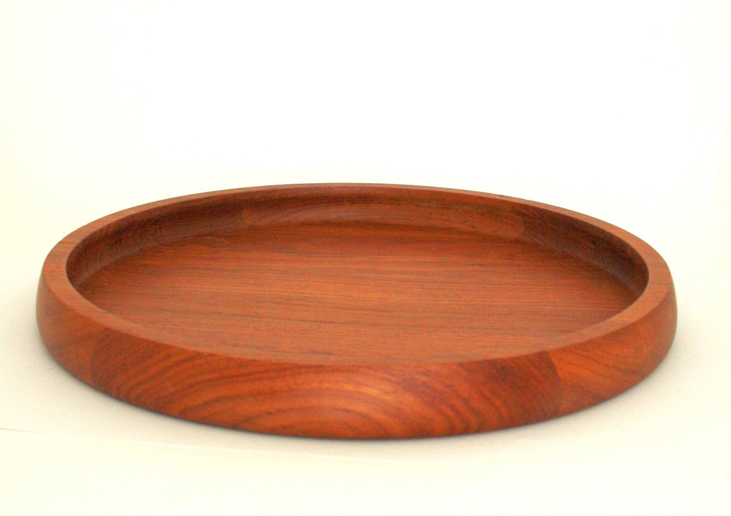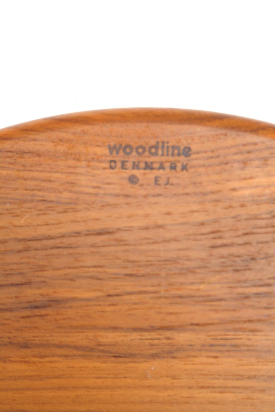 Woodline, Rund teaktræ bakke designet af Erik Jørgensen i 1960'erne. Mærke Woodline, Denmark, EJ. Diameter 34,5 cm. Pris:SOLGT