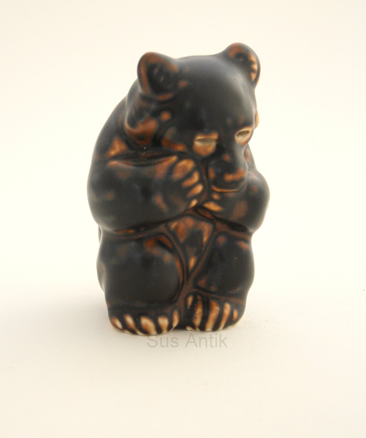 Royal Copenhagen, stoneware, brun glasur. Bjørneunge siddende på bagben. Formgivet af Knud Kyhn. Nr. 21435. Højde 8,5 cm. Pris: 150 kr. stk. Lager: 5