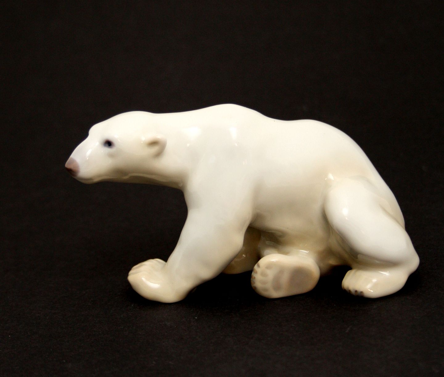 Bing & Grøndahl, Isbjørn siddende. Formgivet af Svend Jespersen. Nr. 2217. Længde 11 cm. I. sortering. Pris: 400 kr. stk. Lager: 2