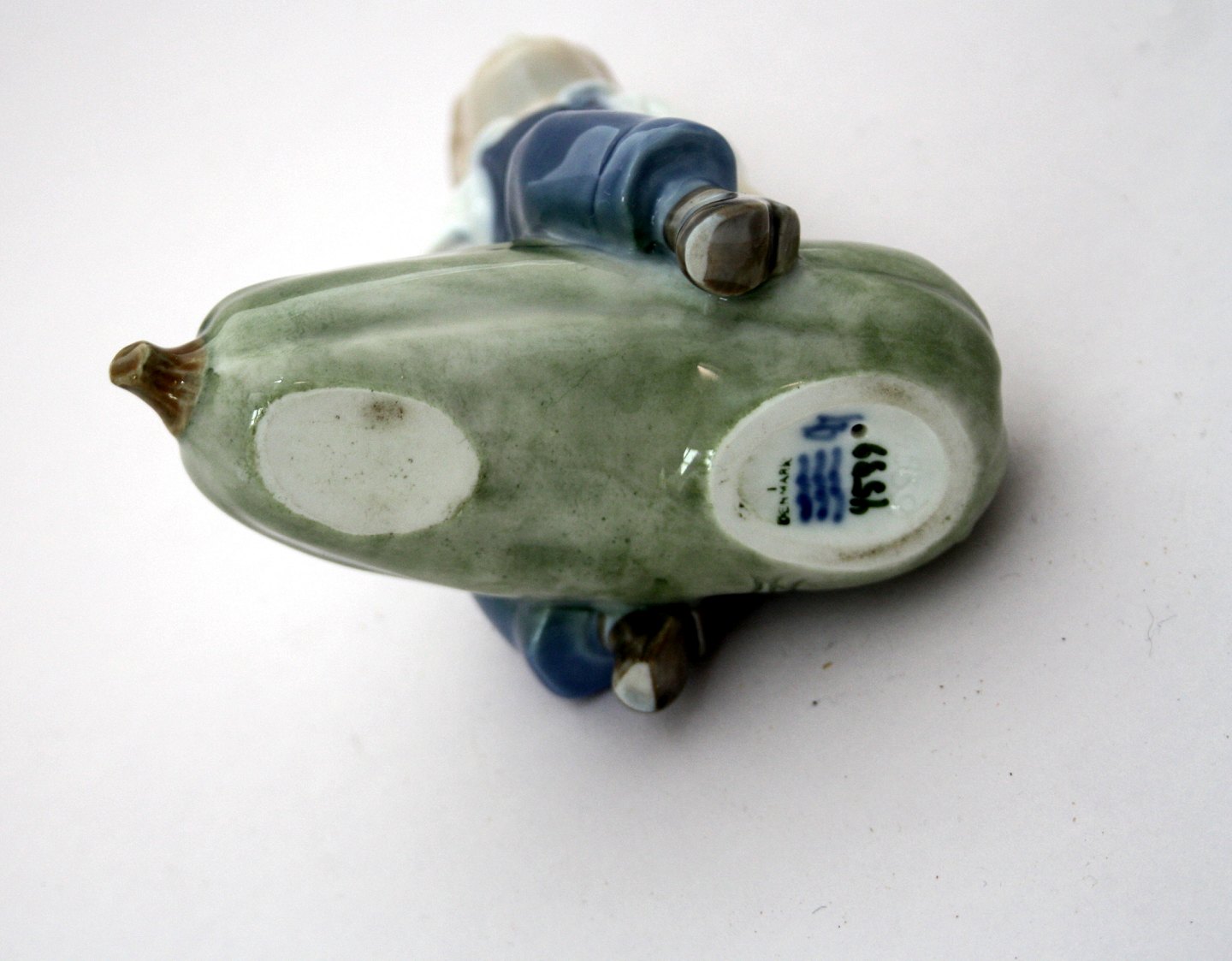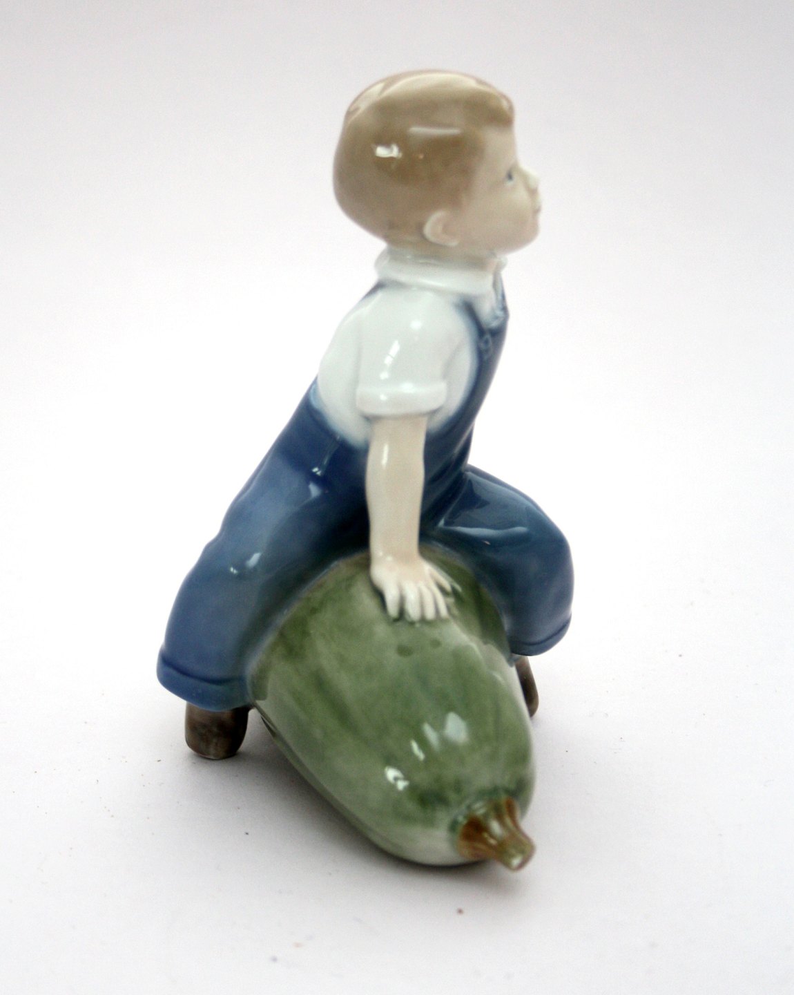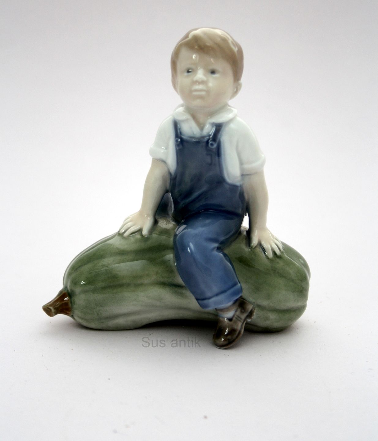 Royal Copenhagen, Dreng på græskar. Designet af J.M. Nissen. Nr. 4539. Længde 11cm. Højde 12 cm. I. sortering. Perfekt stand. Pris: 650 kr.