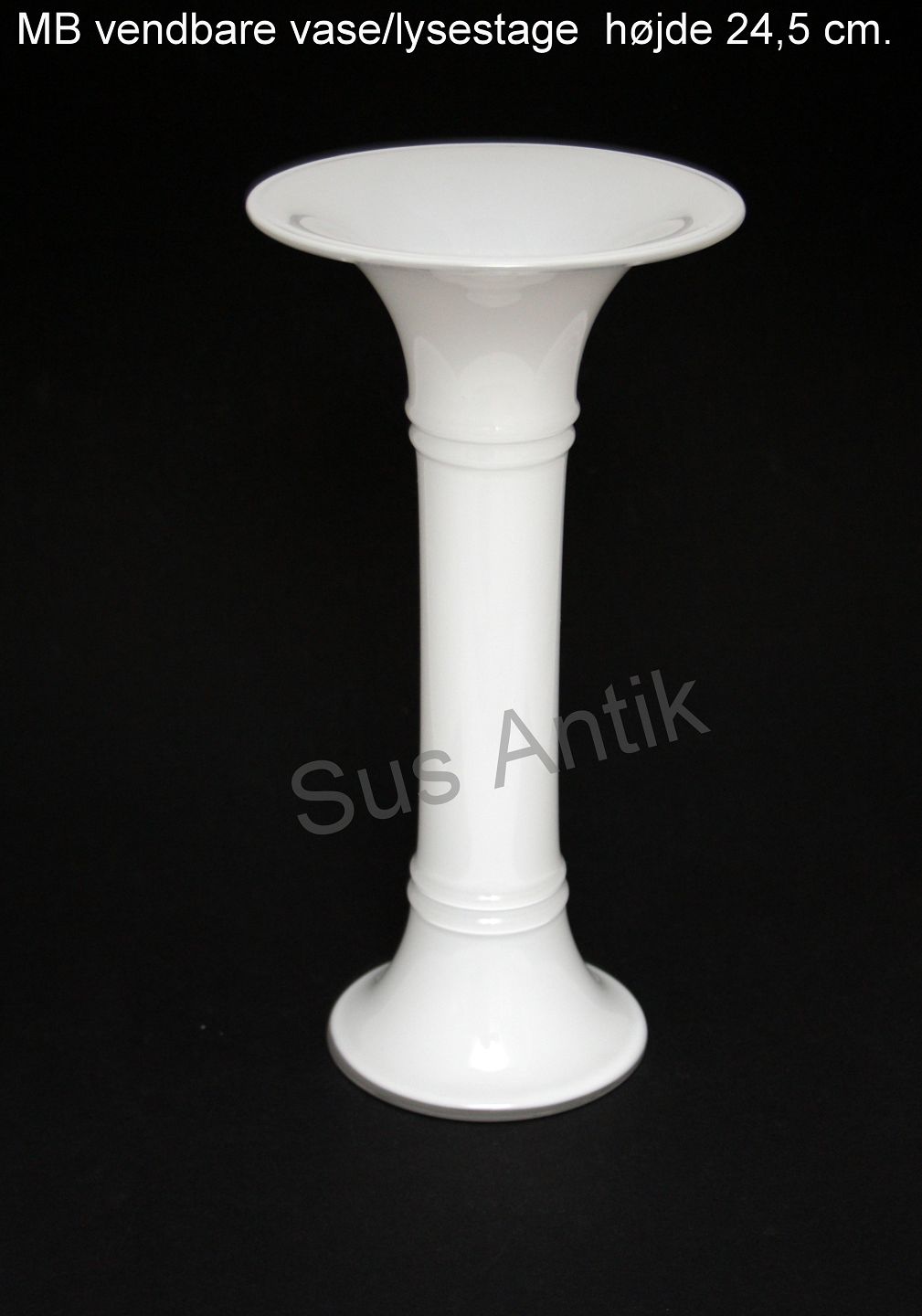 Holmegaard, MB serien opalinehvid glas, Stor vendbar vase/lysestage. Designet af Michael Bang i 1981. Højde 24,5 cm. Pris: 325 kr. stk. Lager: 3