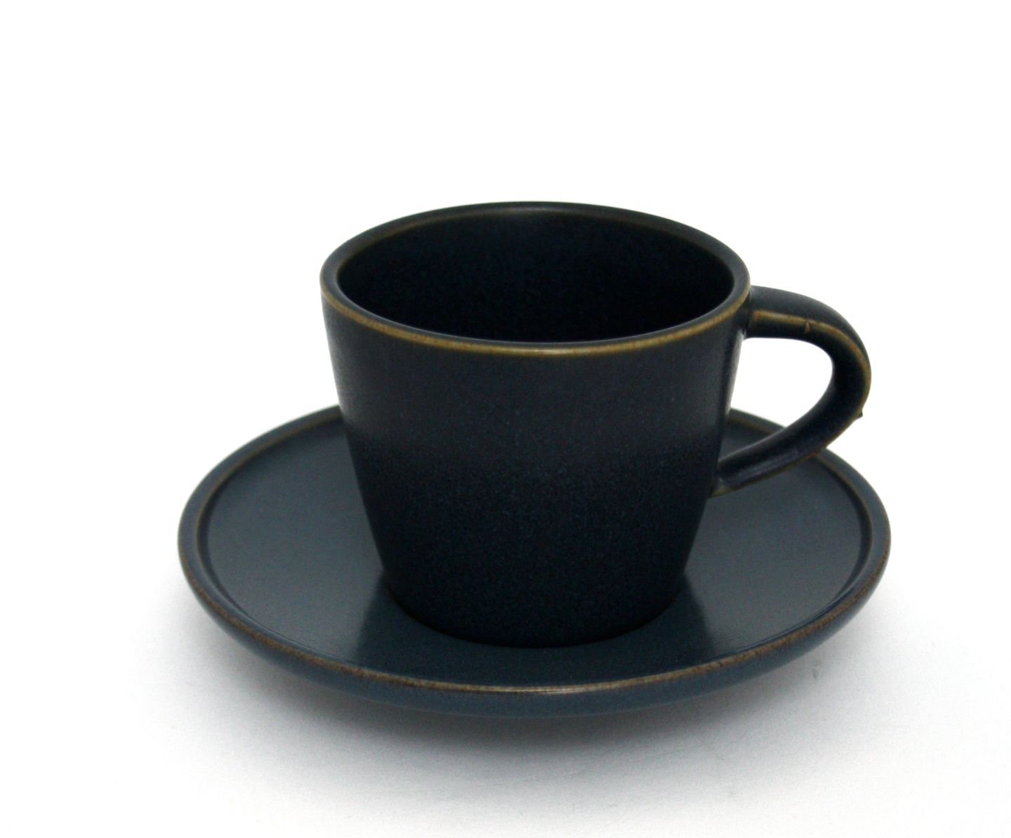Höganäs, Sweden, Blågrå kaffekop med underkop. Højde 6,5 cm. Diameter 8 cm. Flot stand. Pris: 100 kr. stk. Lager: 4