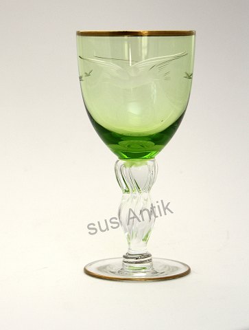 Hvidvin grøn kumme, Mågeglas med slibning, Lyngby