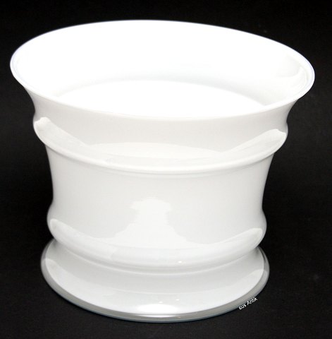 Michael Bang urtepotteskjuler fra MB serien, Opalhvid med klart krystal overfang, Holmegaard glasværk fra 1981 og frem. Mellem urtepotteskjuler. Højde 10,5-11 cm. Diameter 14 cm. Pris: 375 kr. stk. Lager: 4
