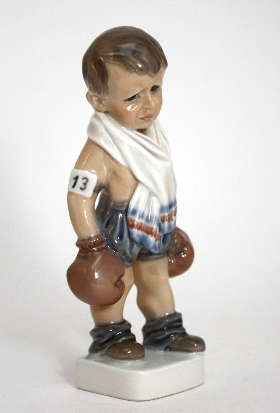 Dahl Jensen Copenhagen, Dødsbokseren, Dreng boxer. Nr. 1069. Højde 14,5 cm. Designet af Kai Frederiksen. I. sortering. Flot stand. Pris: 1300 kr.