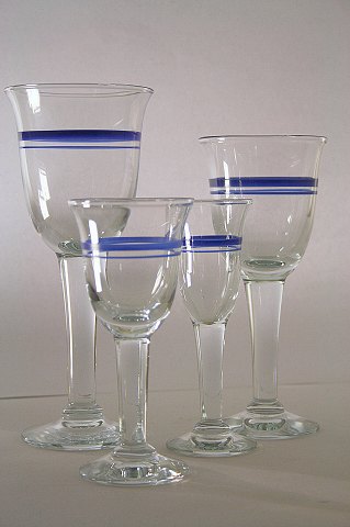 Holmegaard glasværk, Blå klokke glas. Designet af Ole Winther, 1974-90. Hvidvin, højde 17,7 cm. Pris: 200 kr. stk. Lager: 12