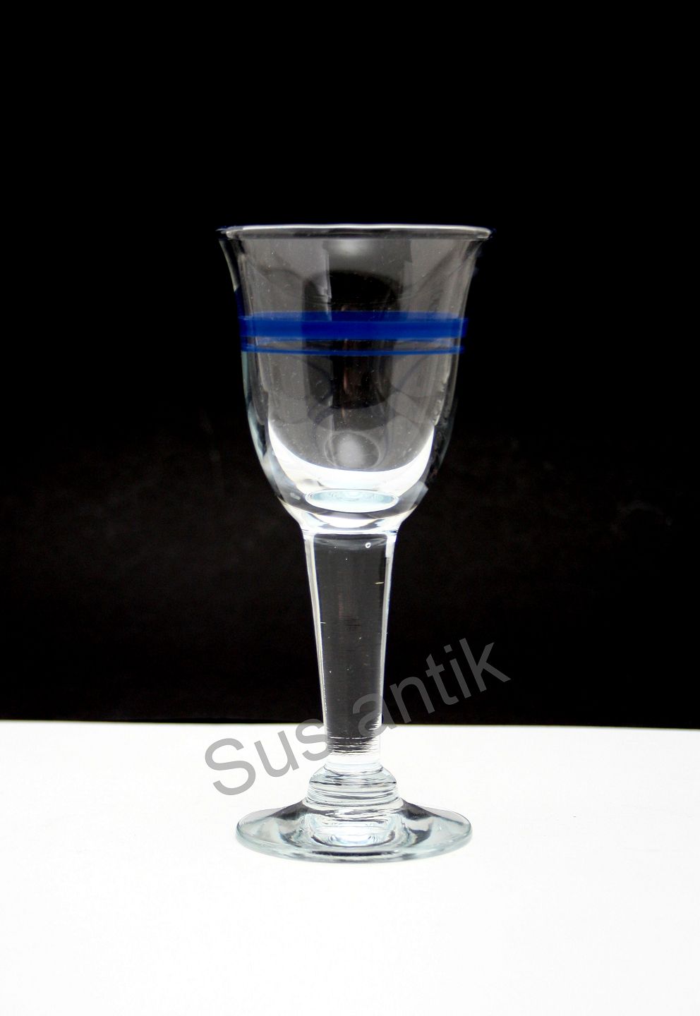 Holmegaard glasværk, Blå klokke glas. Designet af Ole Winther, 1974-90. Portvin, højde 13,8 cm. Pris: 125 kr. stk. Lager: 12+