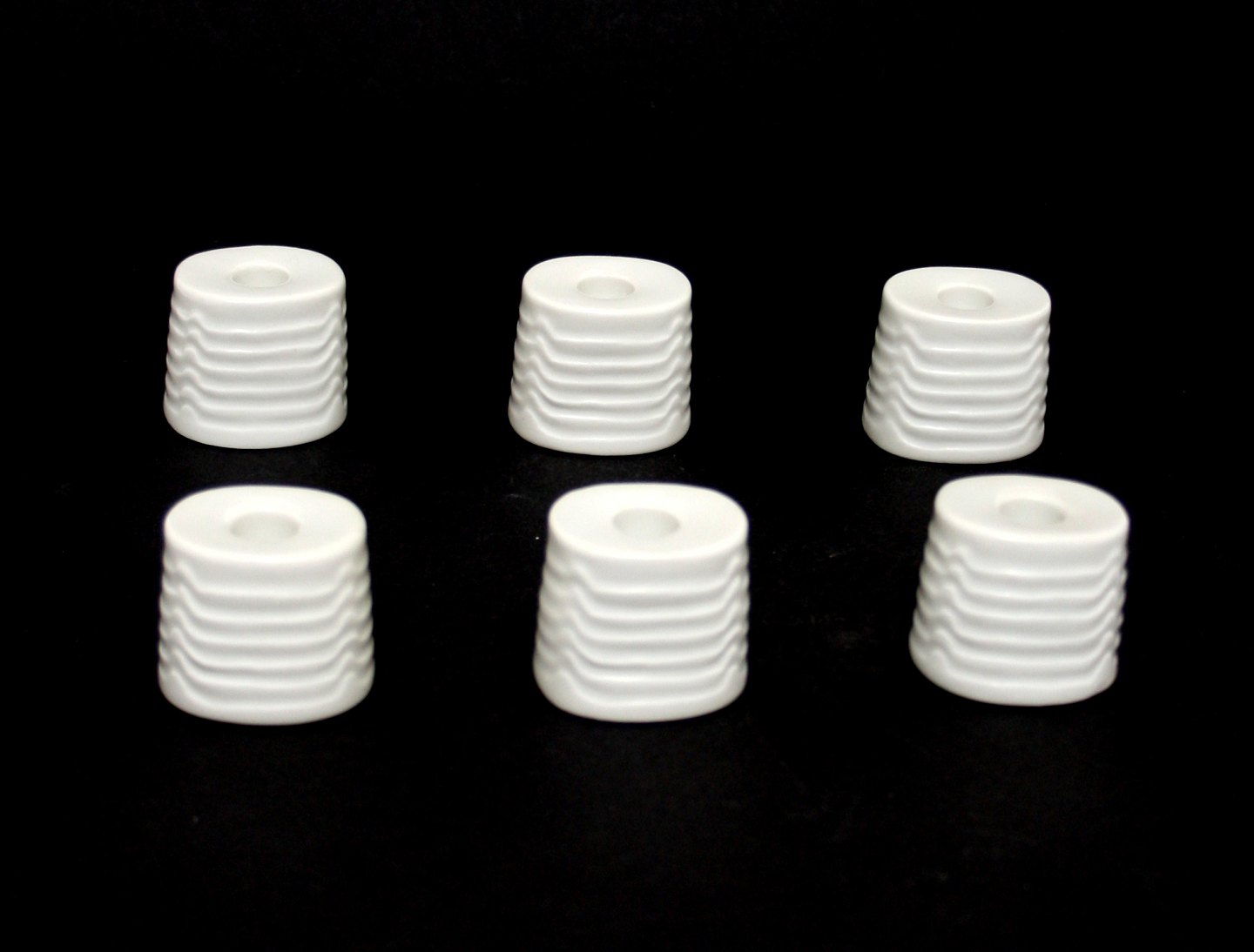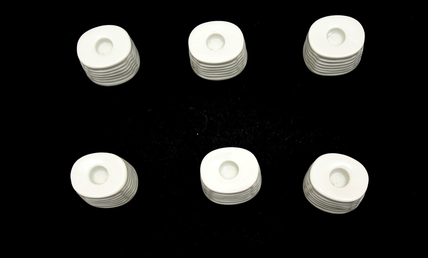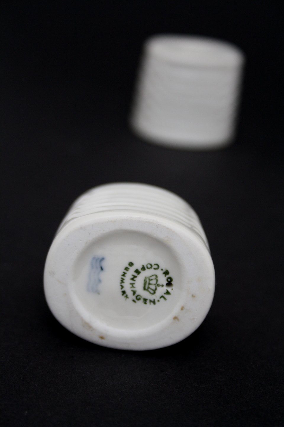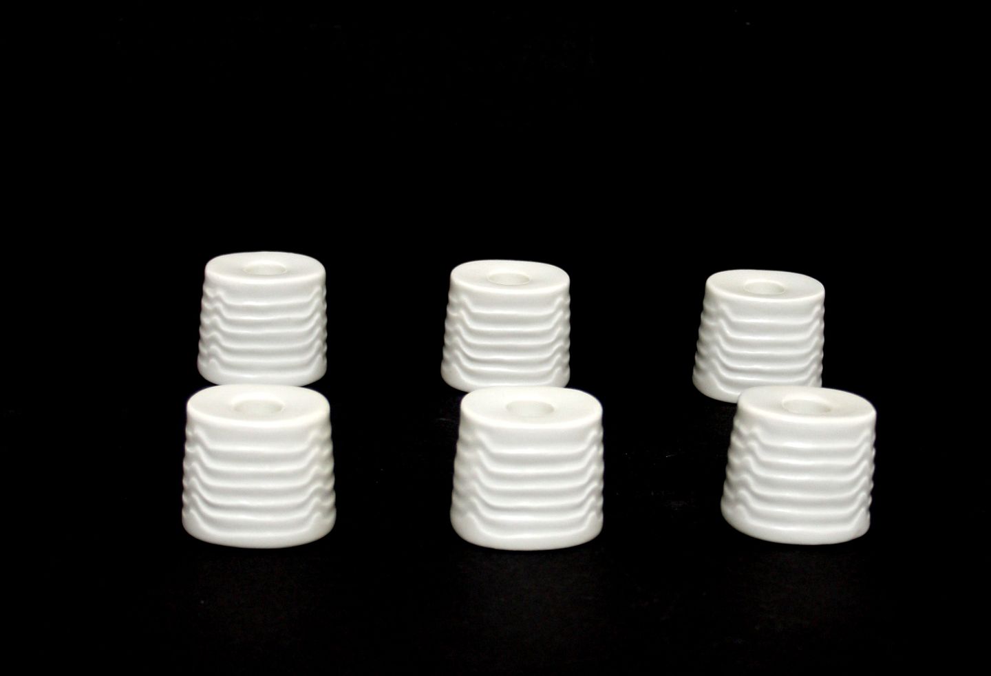 Royal Copenhagen, små kuvertlysestager eller julestager designet af Eva Stæhr Nielsen. Højde 3,5 cm. Længde 4 cm. I. sortering. Pris: 900 kr. samlet for 6 stk.