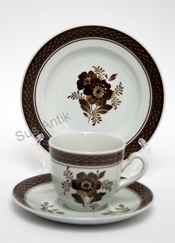Royal Copenhagen, Tranquebar (Trankebar) fajance med brun tulipan og flettet bort designet af Christian Joachim.