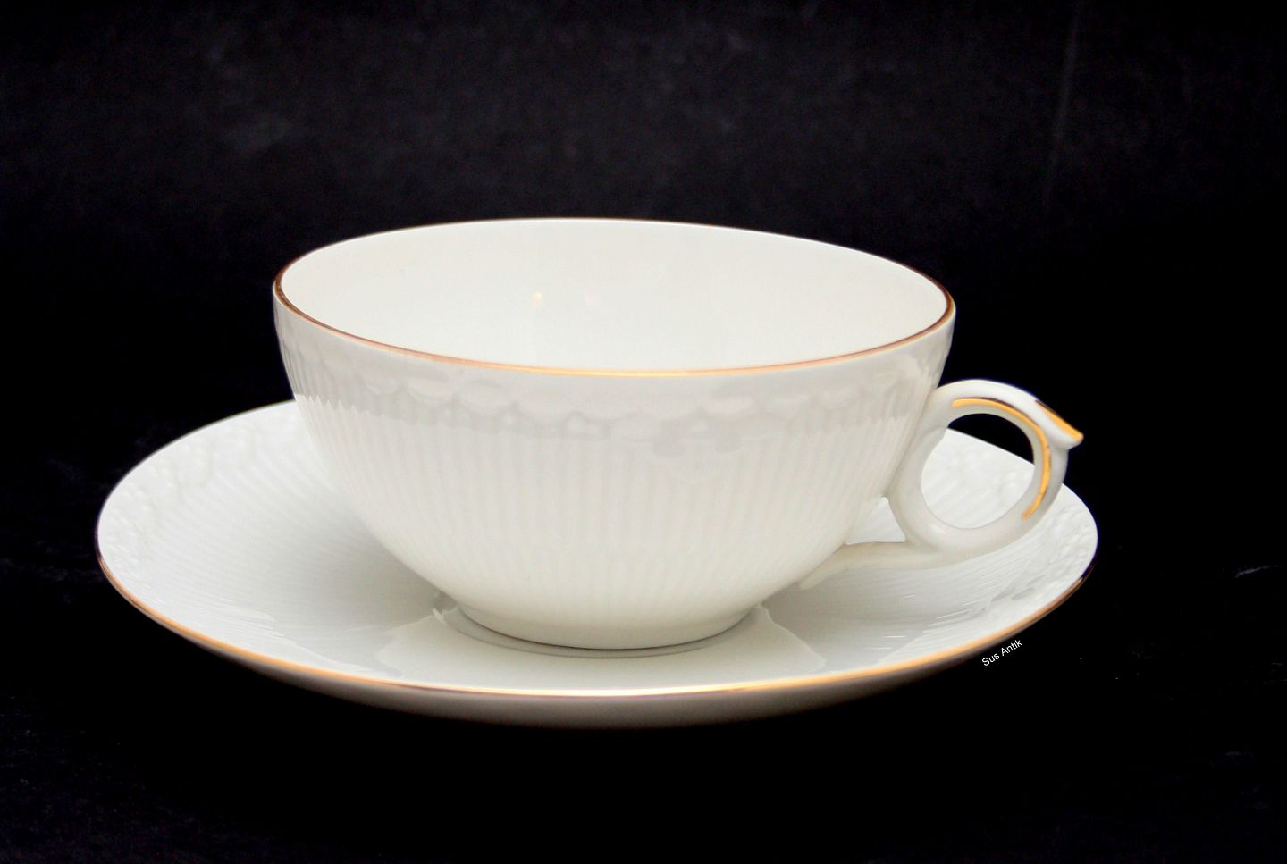 Royal Copenhagen, Tradition, Tekop med underkop. Hvid halvblonde med guld. Nr. 1275/525. Diameter 10 cm. Højde 4,5 cm. I. sortering. Pris: 200 kr. stk. Lager: 7