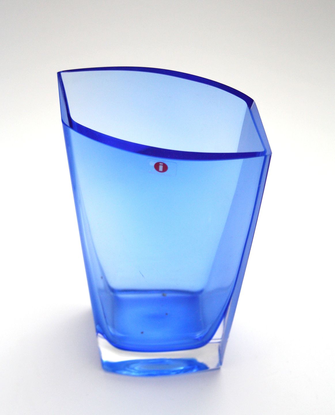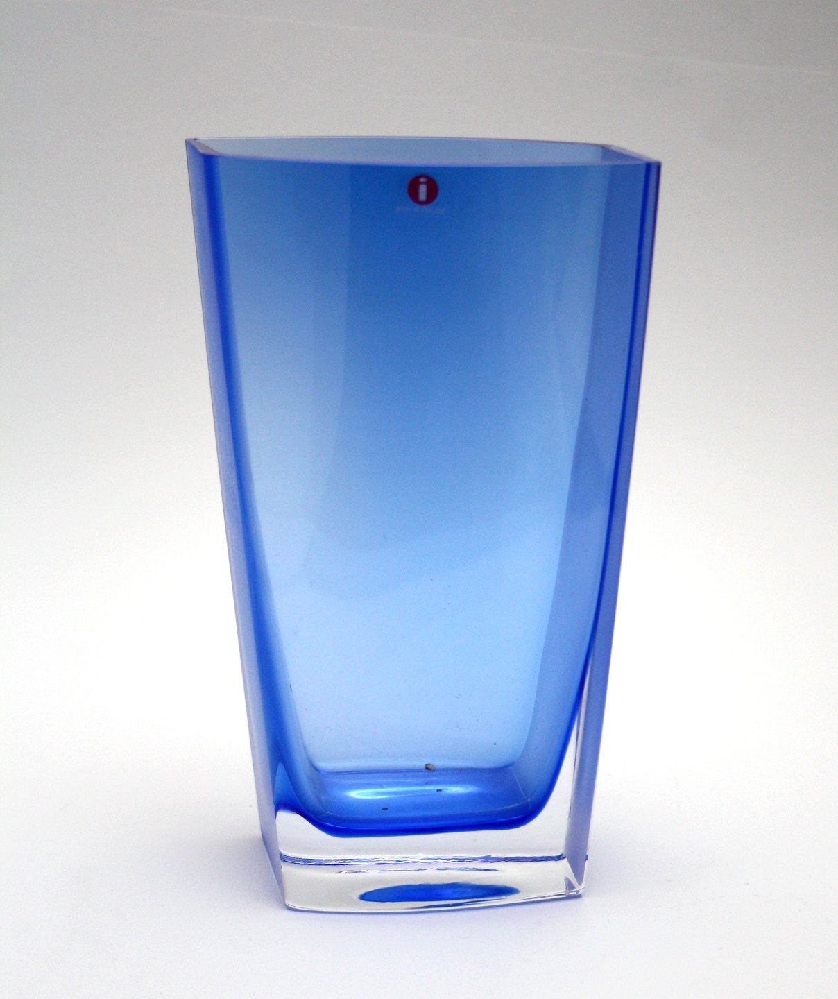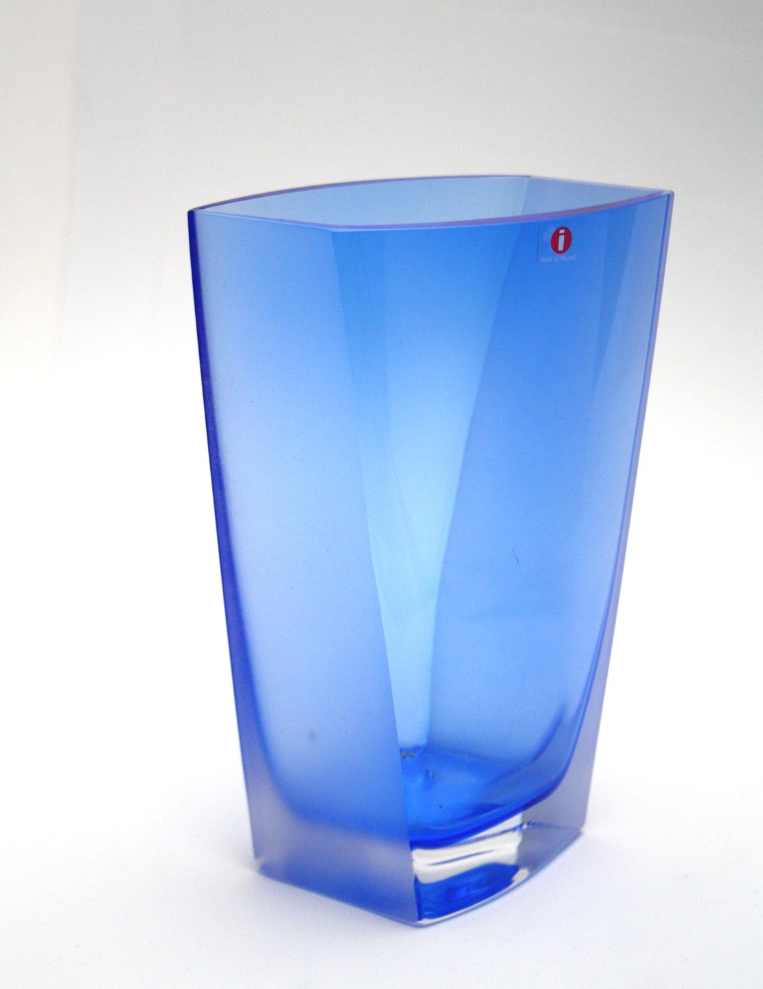 Iittala, Finland, Asymetrisk blålilla vase. Klar på de 2 brede sider og mat på de 2 smalle sider, farven er lidt mørkere end på foto. Højde 18,5 cm. Længde 13 cm. Pris: 375 kr.