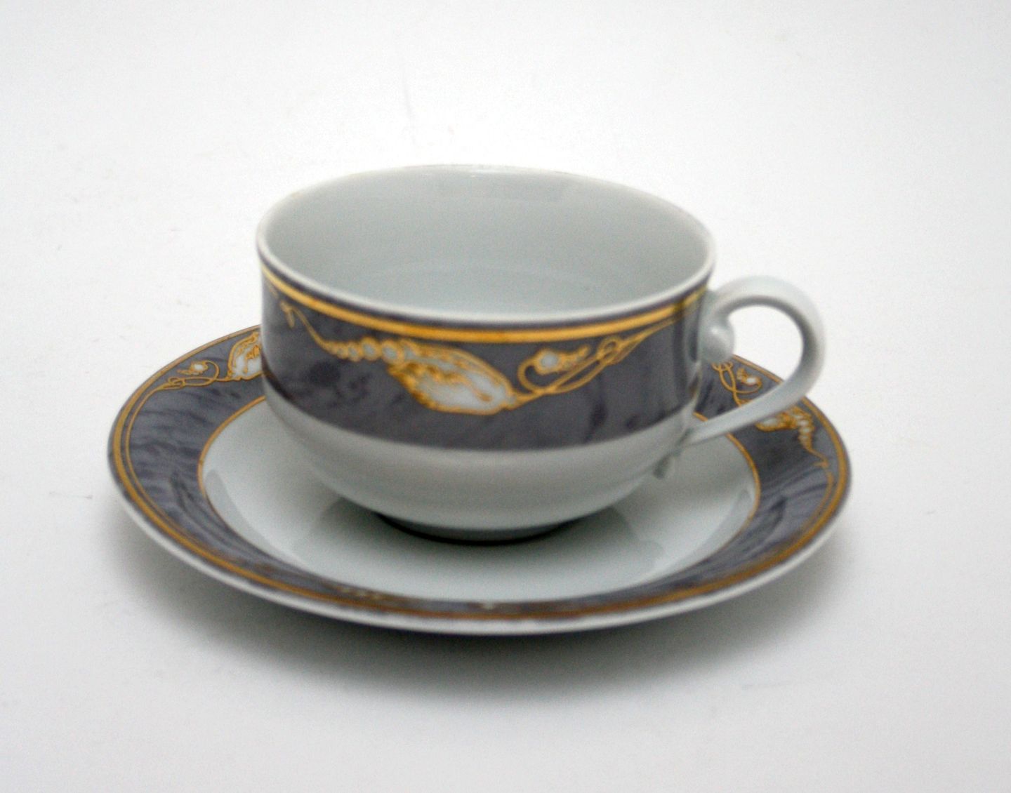 Royal Copenhagen, Grå magnolia. Grå marmoreret bort dekoreret med gylden blomsterknop. Foto er lidt mørkere end koppen er i virkeligheden. Designet af Flemming Eskildsen.