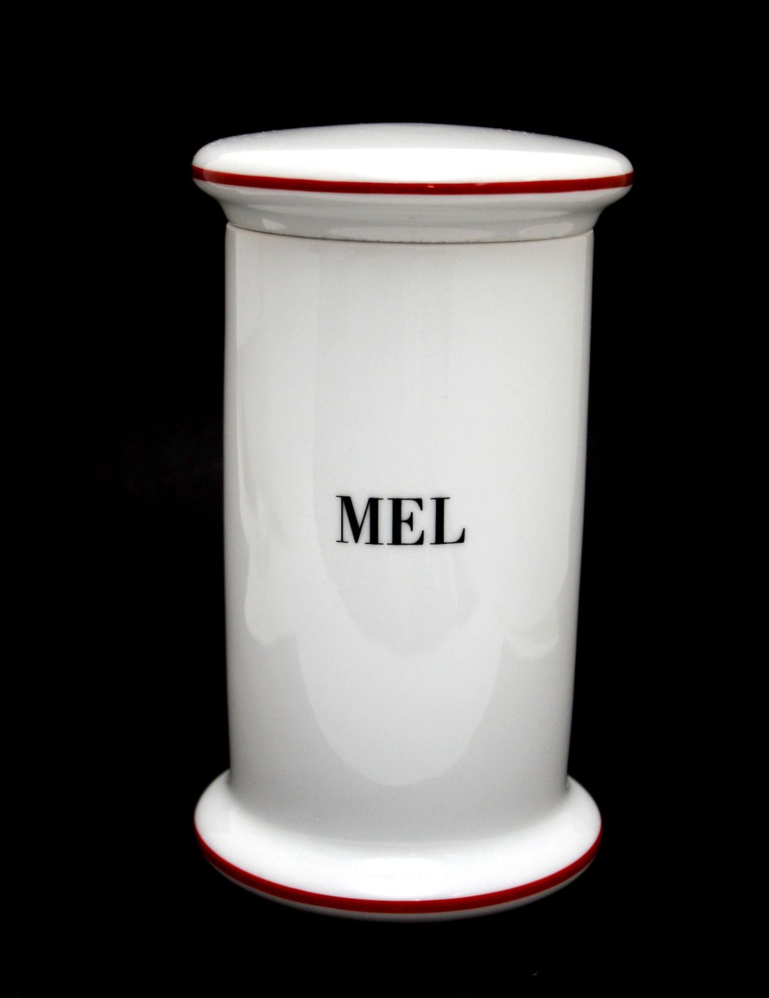 Bing & Grøndahl. Apotekerserien, Mel stor opbevaringskrukke. Højde 18 cm. Diameter 10,5 cm. Pris: 300 kr. stk. Lager: 2