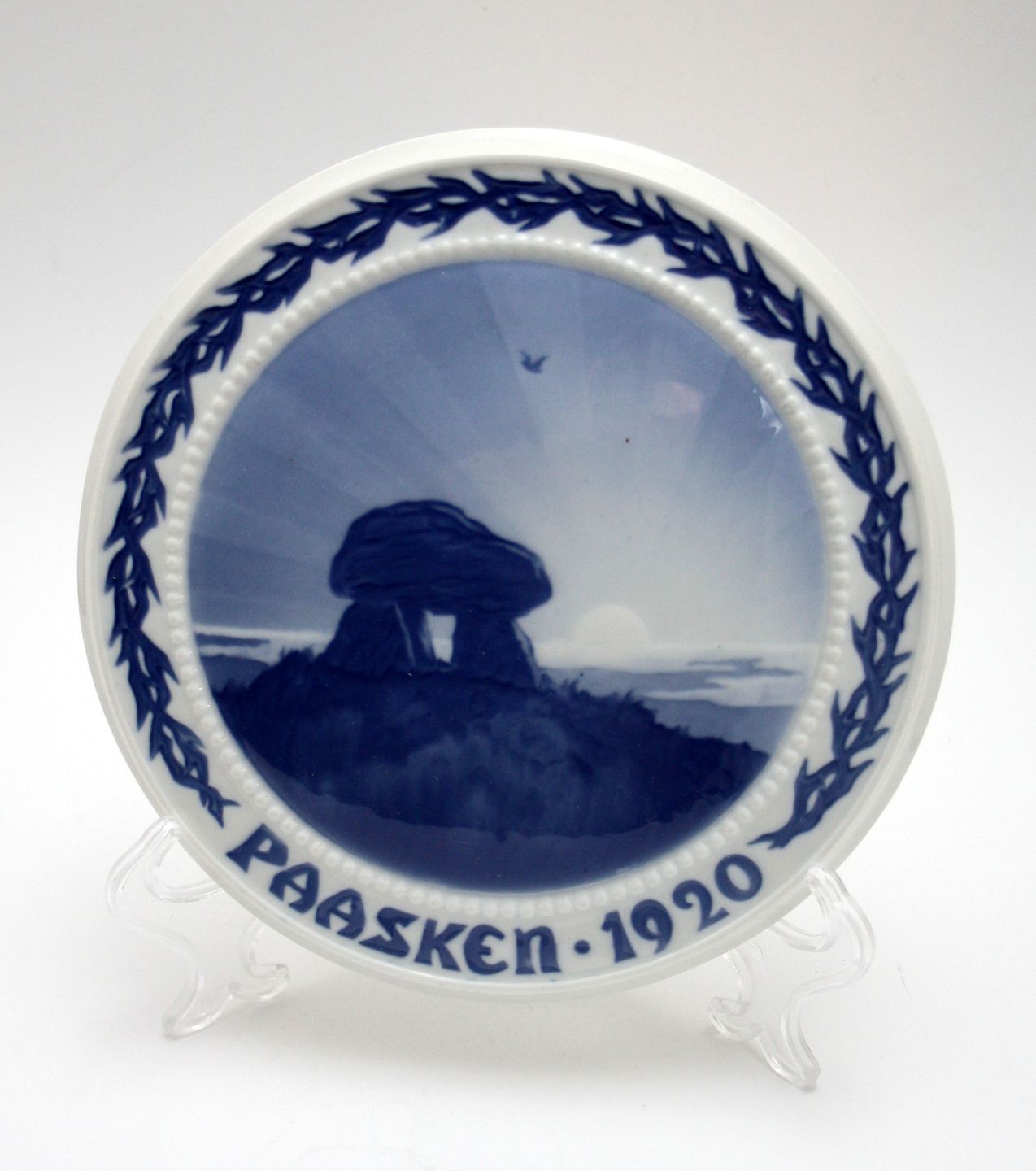 Bing & Grøndahl, Påskeplatte 1919. "Kæmpegrav". Designet af Johannes Achton Friis. Diameter 18,5 cm. Pris: 200 kr. stk. Lager: 1