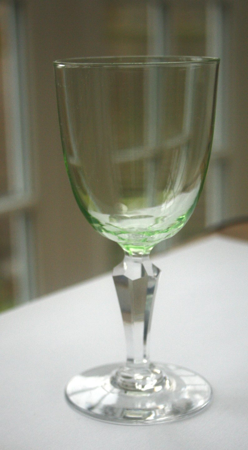 Holmegaard glasværk 1900-30, Pfeiffer Glas. Rhinskvin, hvidvin neon eller urangrøn kumme. Højde 13 cm. Diameter 6 cm. Pris: 150 kr. stk. Lager: 6
