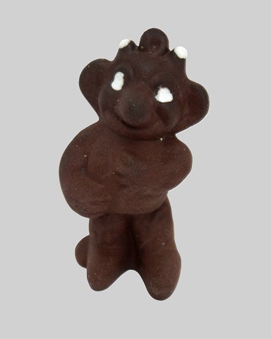 Michael Andersen, Bornholm. Brun stentøjserie fra 1960'erne med forskellige motiver. Kande eller vase med motiv af liggende hjort buk. Højde 15 cm. Nr. 6471. Stemlet i bund. Prik med manglende glasur i den brune bund. Fin stand. Pris: 325 kr.