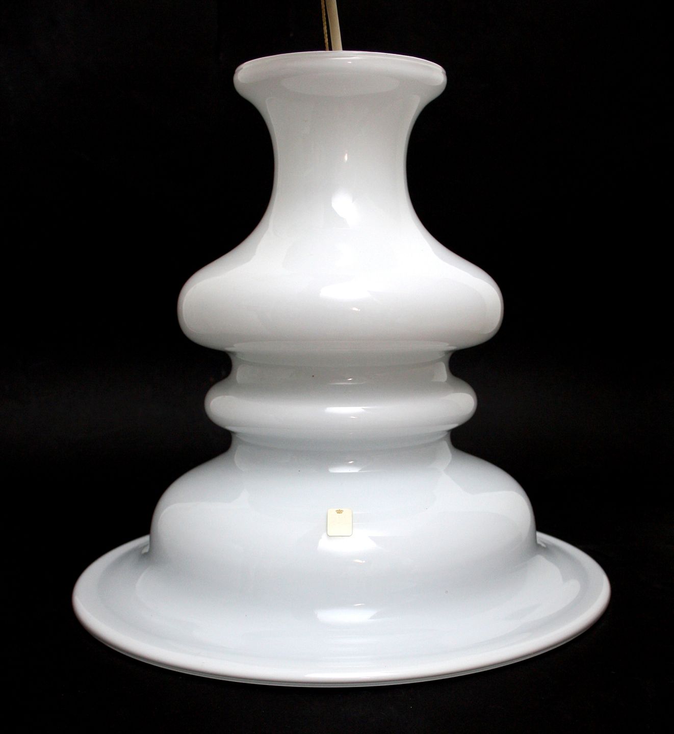 Holmegaard, Stor Bibliotek pendel i opal hvid glas. Designet af Sidse Werner i 1981. Højde 31,5-32 cm. Nederste diameter 33-33,5 cm. Fin stand. Pris: 975 kr. stk. Lager: 2