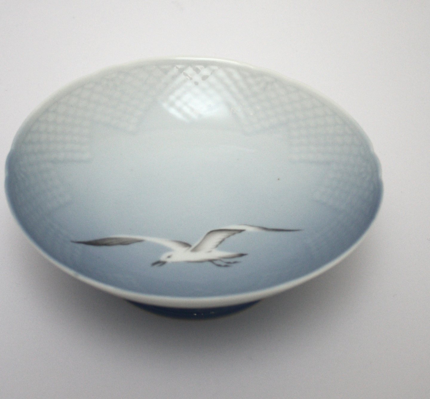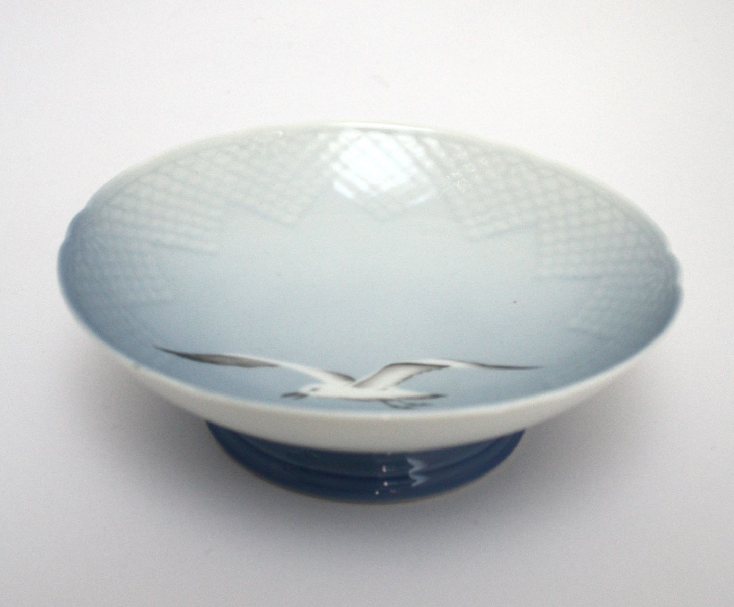 Bing & Grøndahl, Måge uden guld. Lille småkageopsats på lav fod. Nr. 222. Højde 5 cm. Diameter 15 cm. II. sortering. Fin stand. Pris: 300 kr. stk. Lager: 2