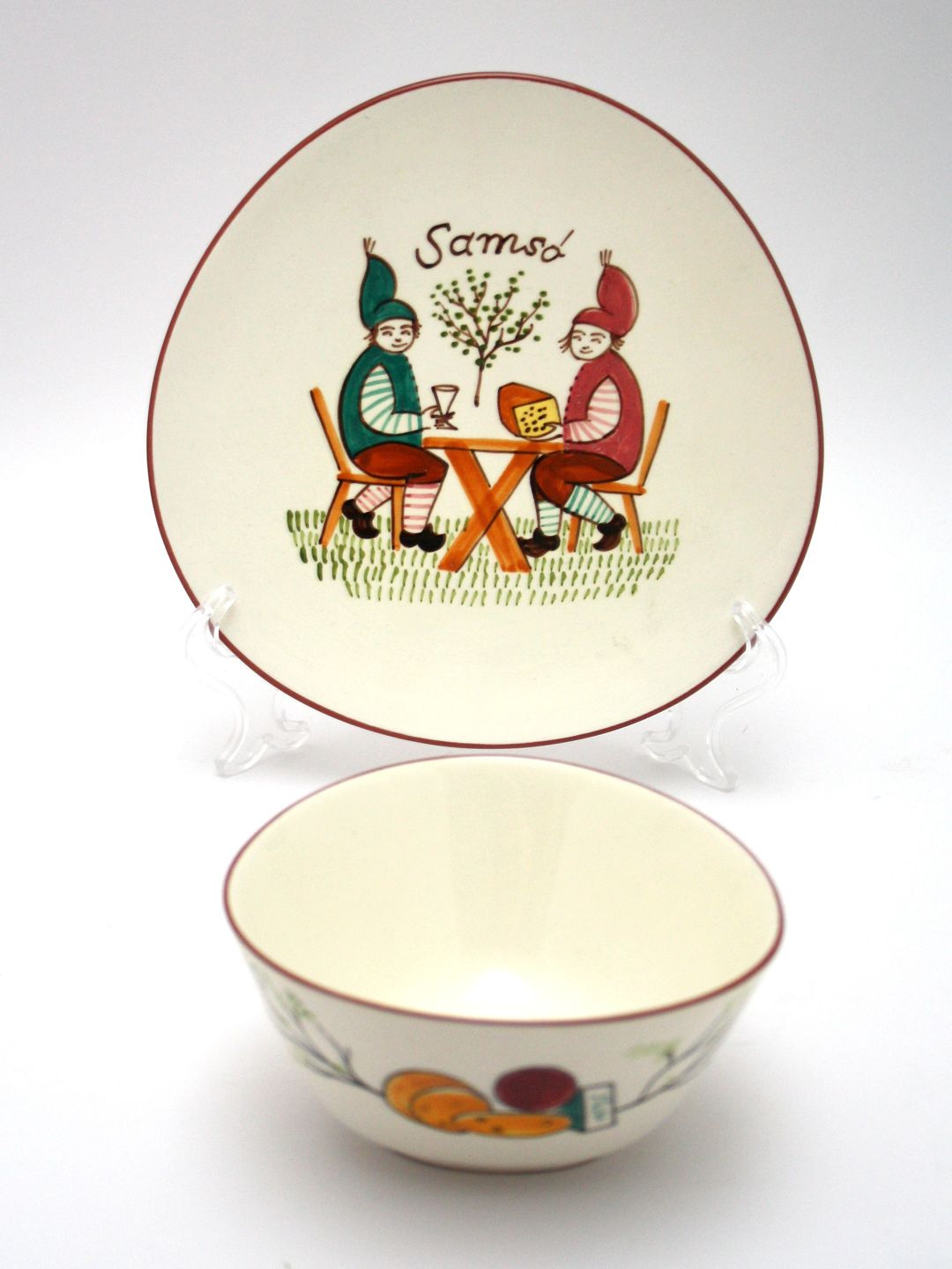 Knabstrup, Ostestellet. Formgivet af Johannes Hansen i 1959 og dekoreret af Paul Høyrup. Motiv og navn for de forskellige danske ostetyper, Fynbo, Molbo, Danbo, Maribo, Esrum og Samsø.