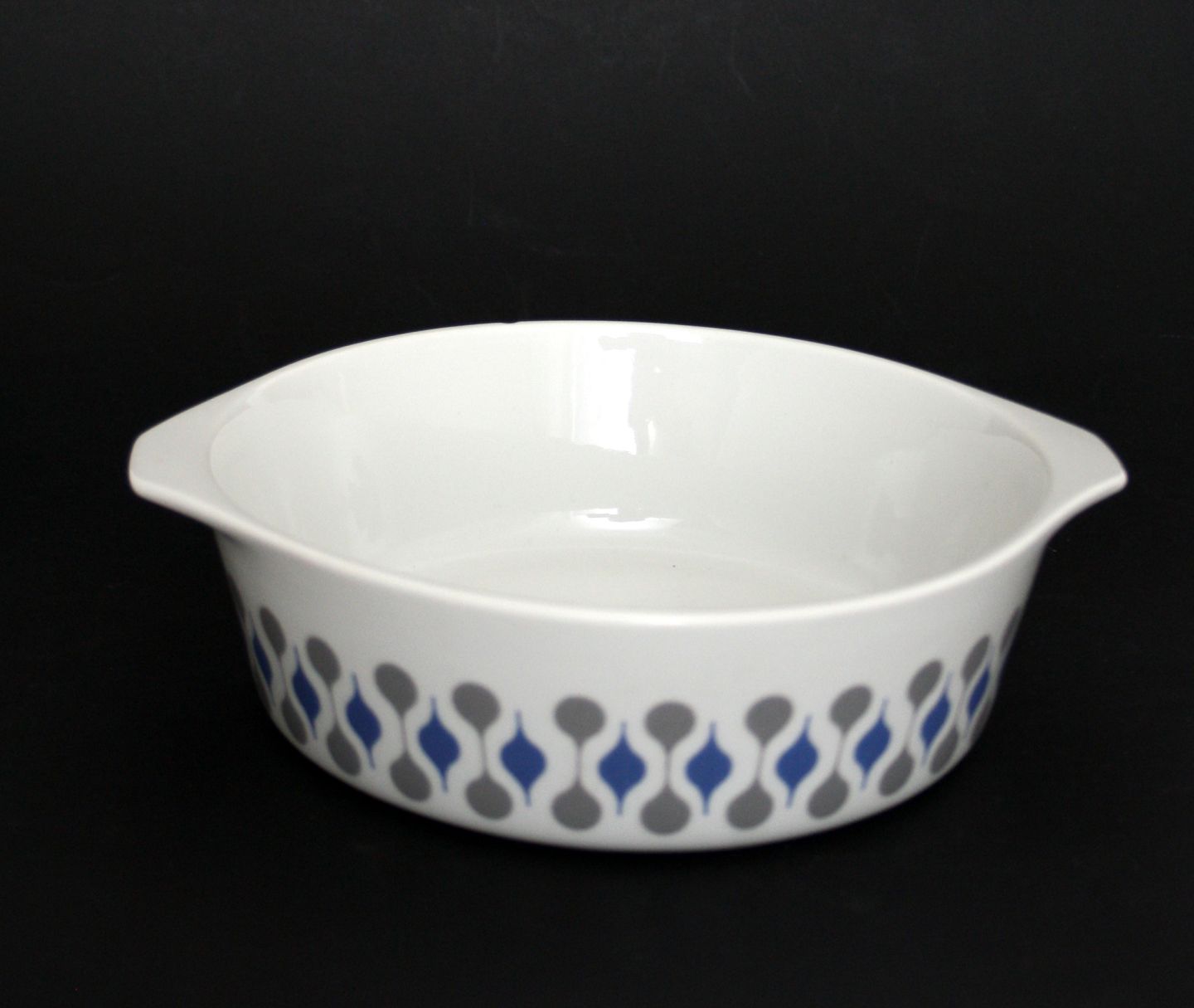 Lyngby, Dan-ild 66. Design Axel Brüel. Gratinskål med ører mellemstørrelse. Højde 5,5 cm. Diameter 17,5 cm. Fin stand med produktionsfejl på kant under glasuren. Pris: 225 kr. stk. Lager: 1