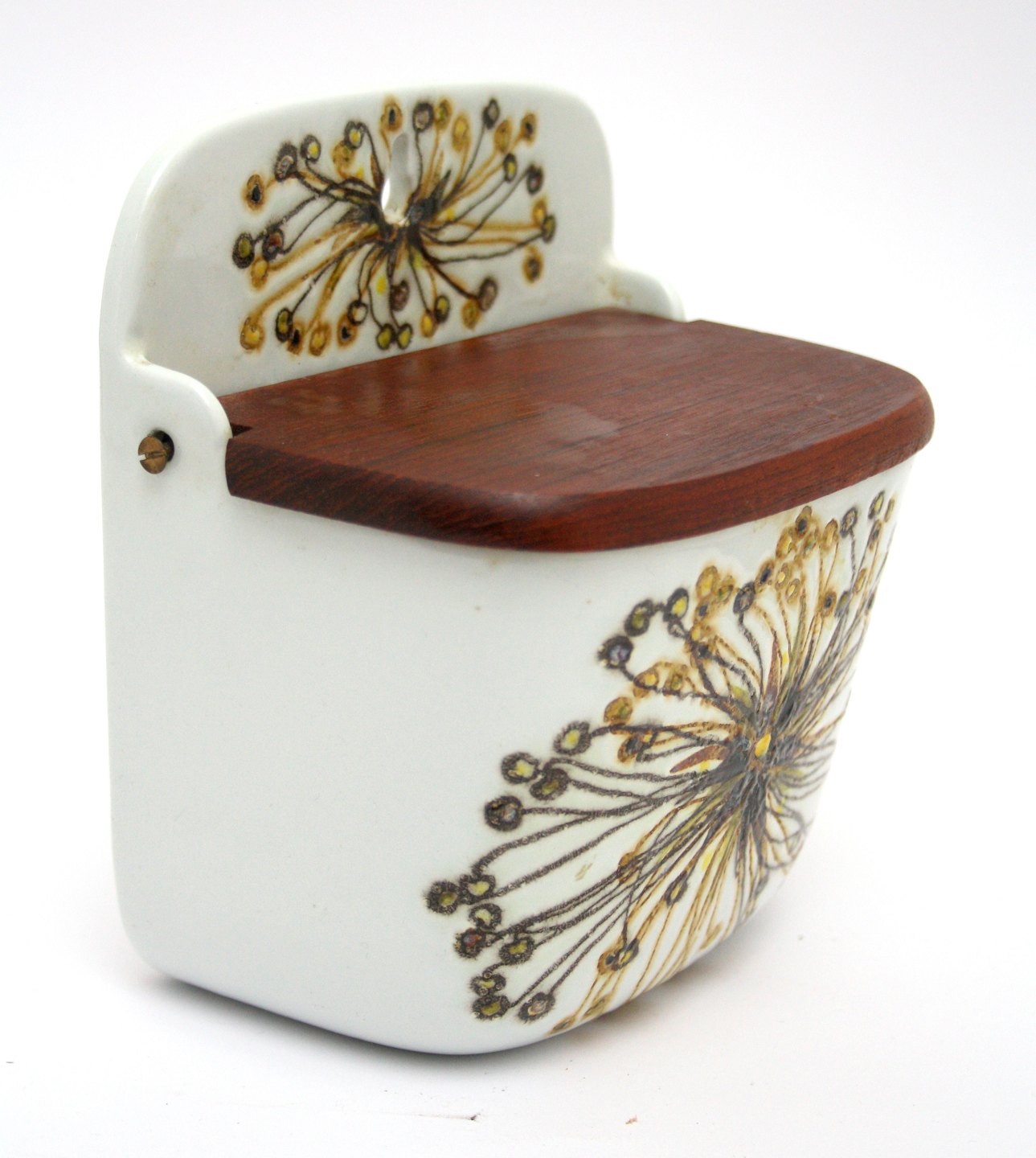 Royal Copenhagen, Kunstfajance, Saltkar. Designet af Ellen Malmer. Nr. 635/3643. Højde 15,5 cm. Længde 15 cm. Dybde 9 cm. Pris: 375 kr.