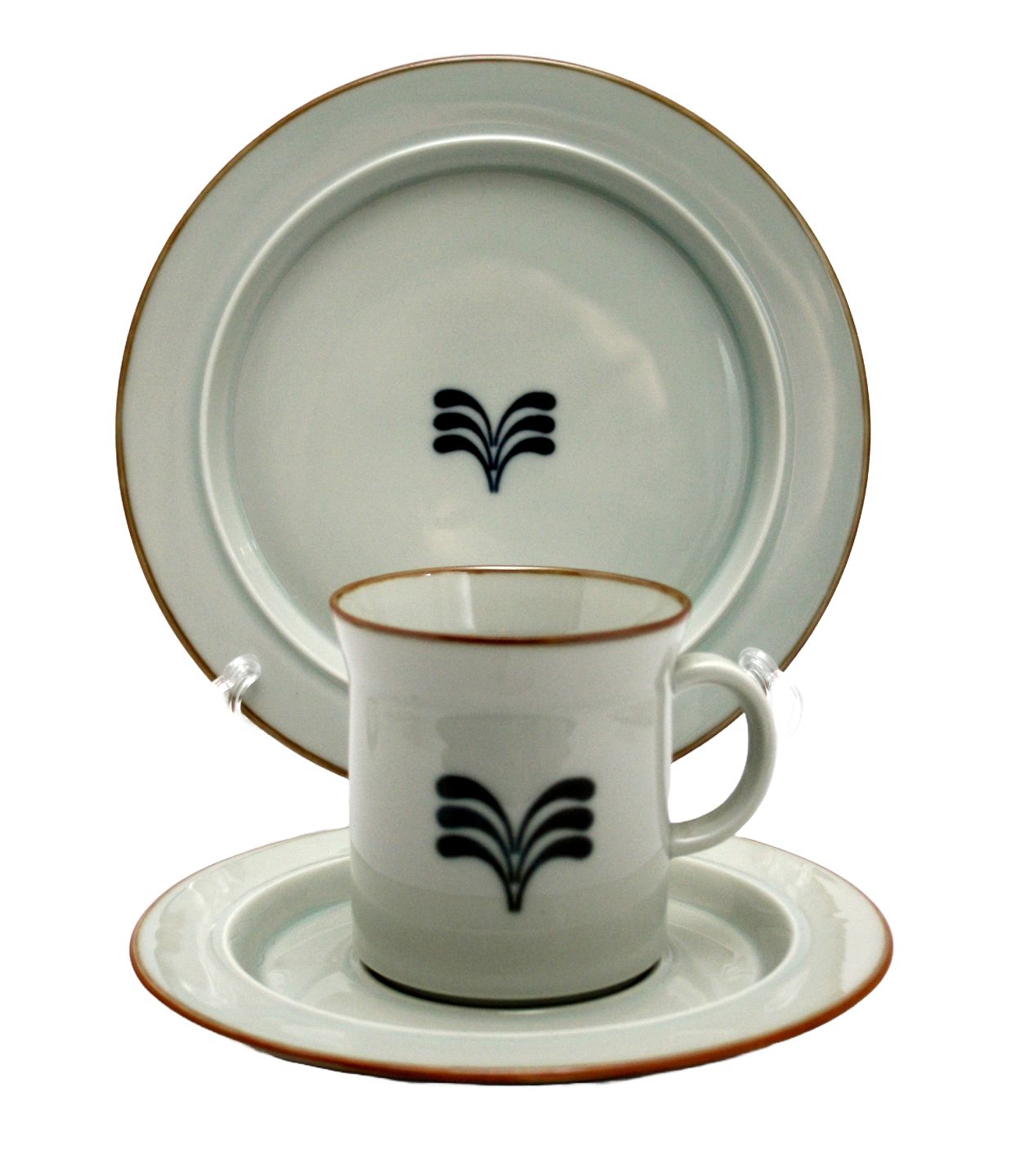 Krus med underkop. Højde 8 cm. Øverste diameter 7,5 cm. Underkop diameter 16 cm. Pris: SOLGT