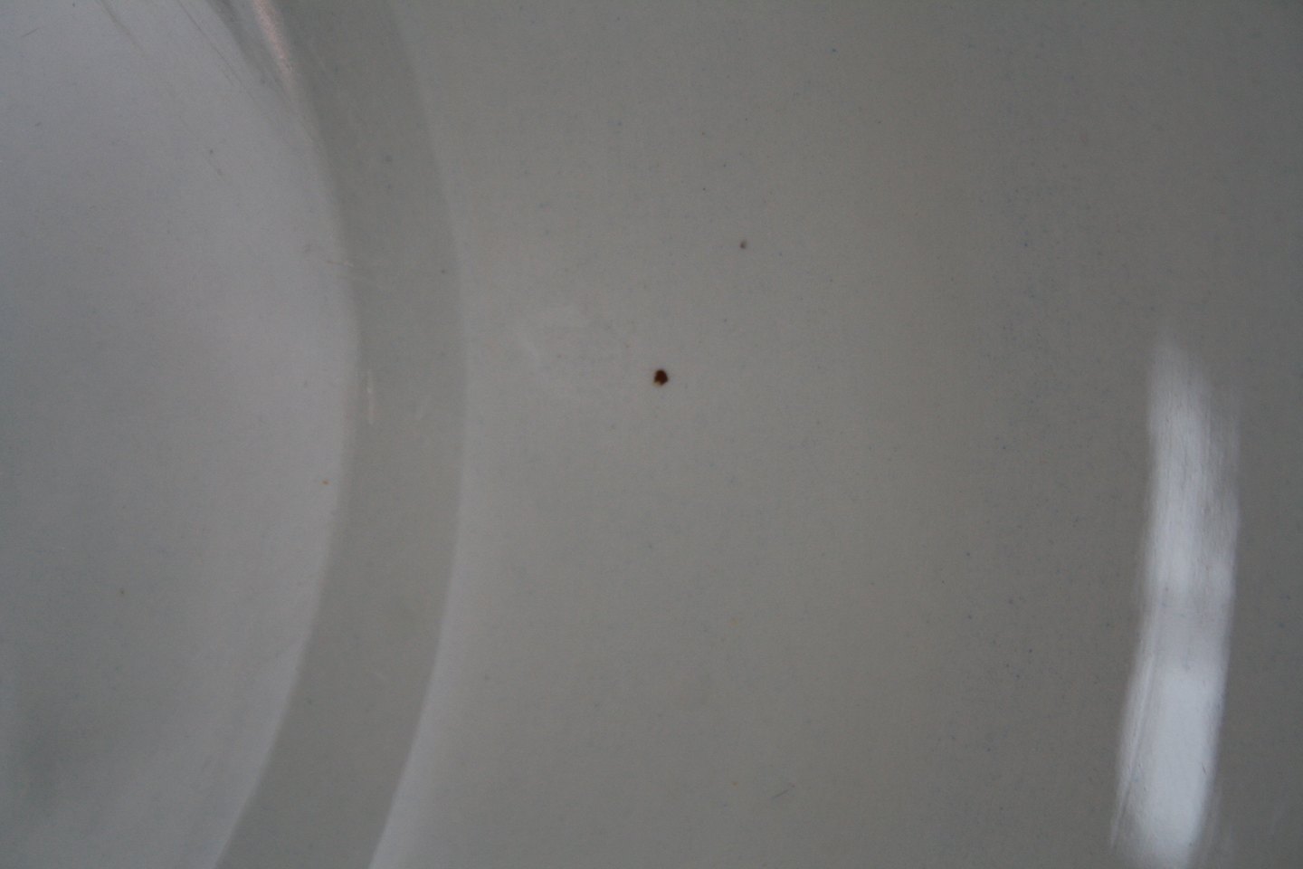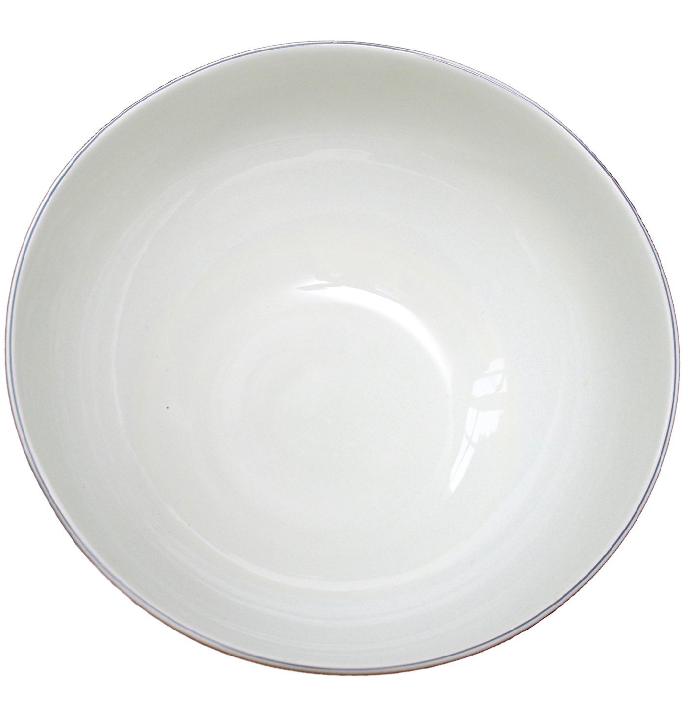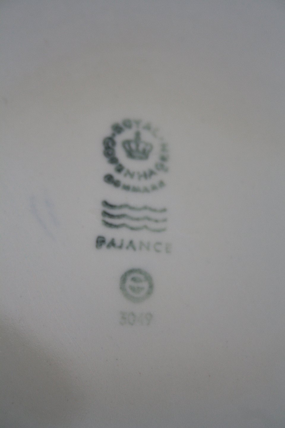 Royal Copenhagen fajance, Blåkant tidligere produceret under Aluminia. Designet af Grethe Meyer i 1965. Stor salatskål nr. 3049. Højde 15,5 cm. Diameter 29 cm. II. sortering med brændingsplet, ellers flot stand. Pris: 1400 kr.