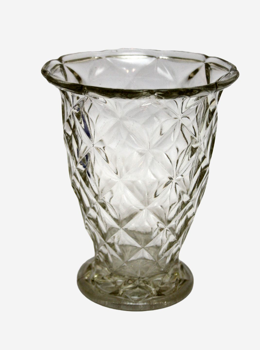 Klar vase i pressemønstret Odin fra Fyens Glasværk 1924 og senere. Højde 17 cm. Øverste diameter 13,5 cm. Fin og hel stand.